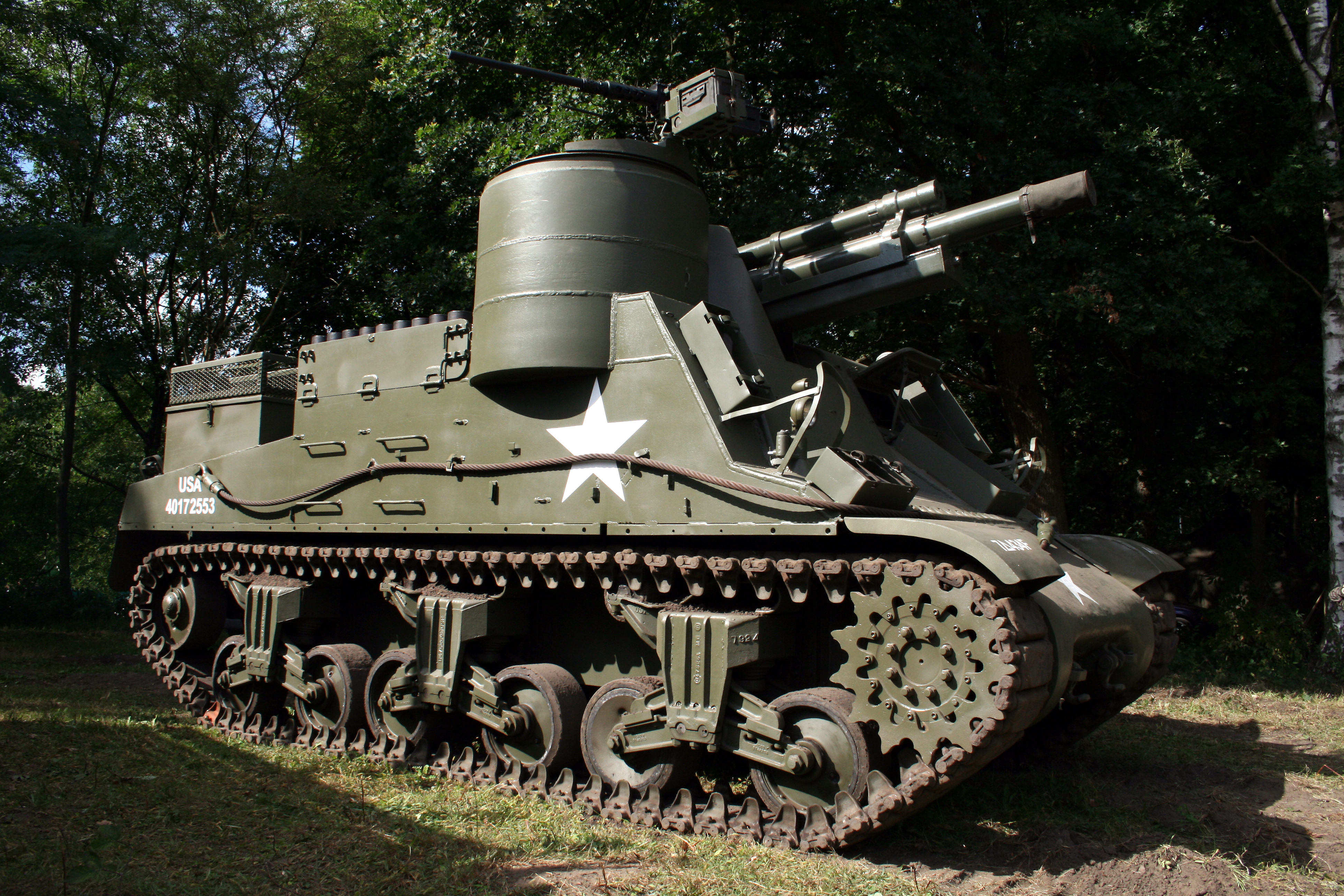 L’armée américaine commence à développer en octobre 1941 un obusier sur châssis de char de M3, dans le but de mécaniser l’artillerie destinée aux divisions blindées. 2 véhicules d’essais, nommés T32 105mm HMC, débutent leurs essais en février 1942 et, après quelques modifications mineures, comme l’ajout d’une mitrailleuse M2, l’engin est accepté pour le service en avril 1942. Véhicule d’artillerie autopropulsée le plus employé par les États-Unis pendant la Seconde Guerre mondiale, le châssis du M7 est peu à peu modifié en cours de production pour se rapprocher de celui du M4, faisant du M7 une variante à la fois du M3 et du M4.