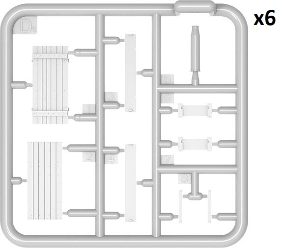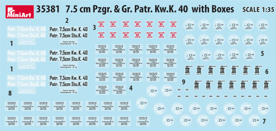 Il s'agit d'un kit de montage de maquettes en plastique à l'échelle 1/35. Le kit contient 6 caisses de munitions, 6 obus vides, 28 obus.