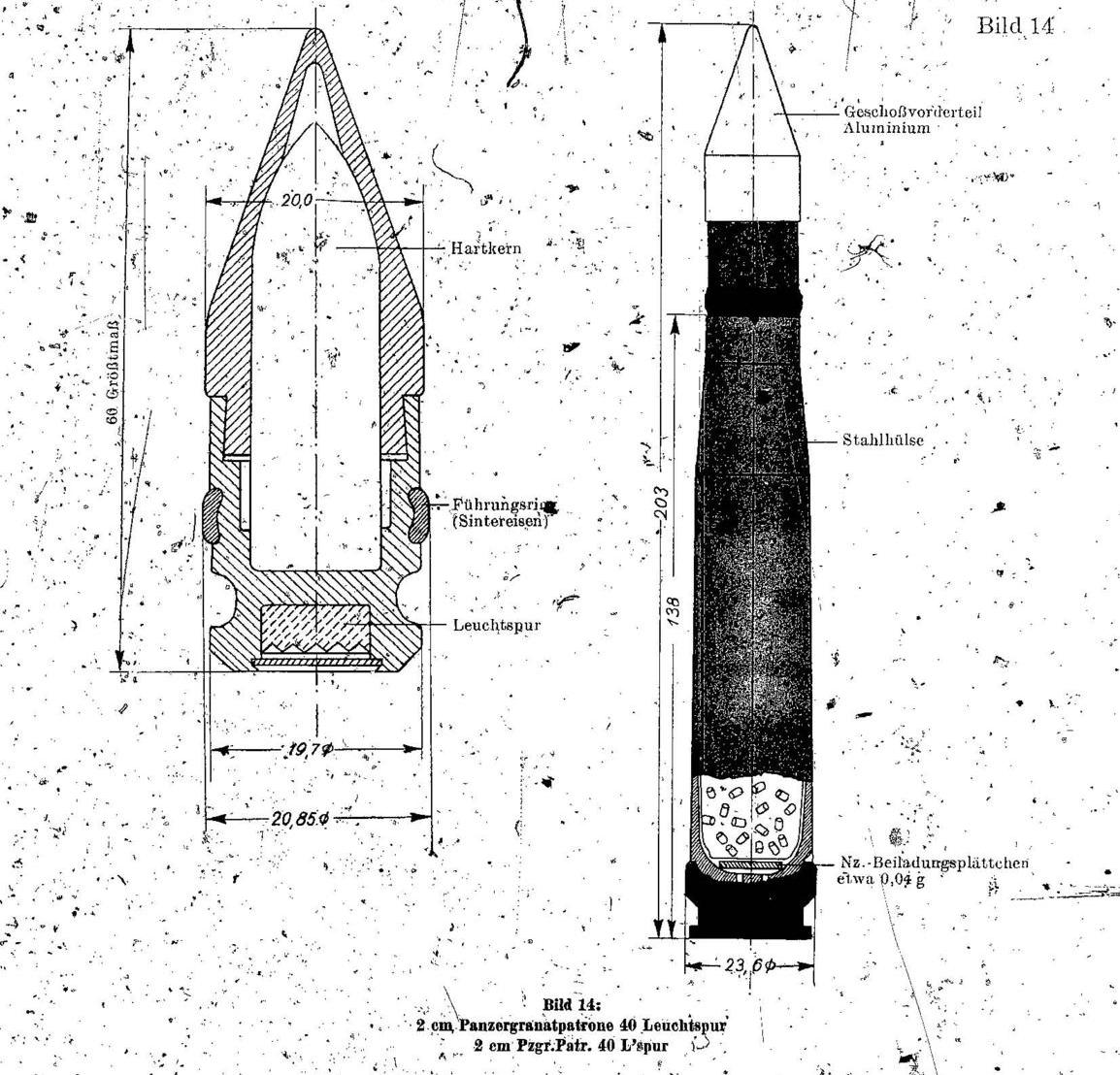 L'obus APCR, rare, cher et très efficace à courte portée est constitué d'un noyau dur (Hartkern) au carbure de tungstène. Doté d'une forte vitesse initiale qui décroit avec la distance, il use prématurément le tube et le manque stratégique de son composant entraîne la restriction d'emploi puis l'arrêt de production en 1943.