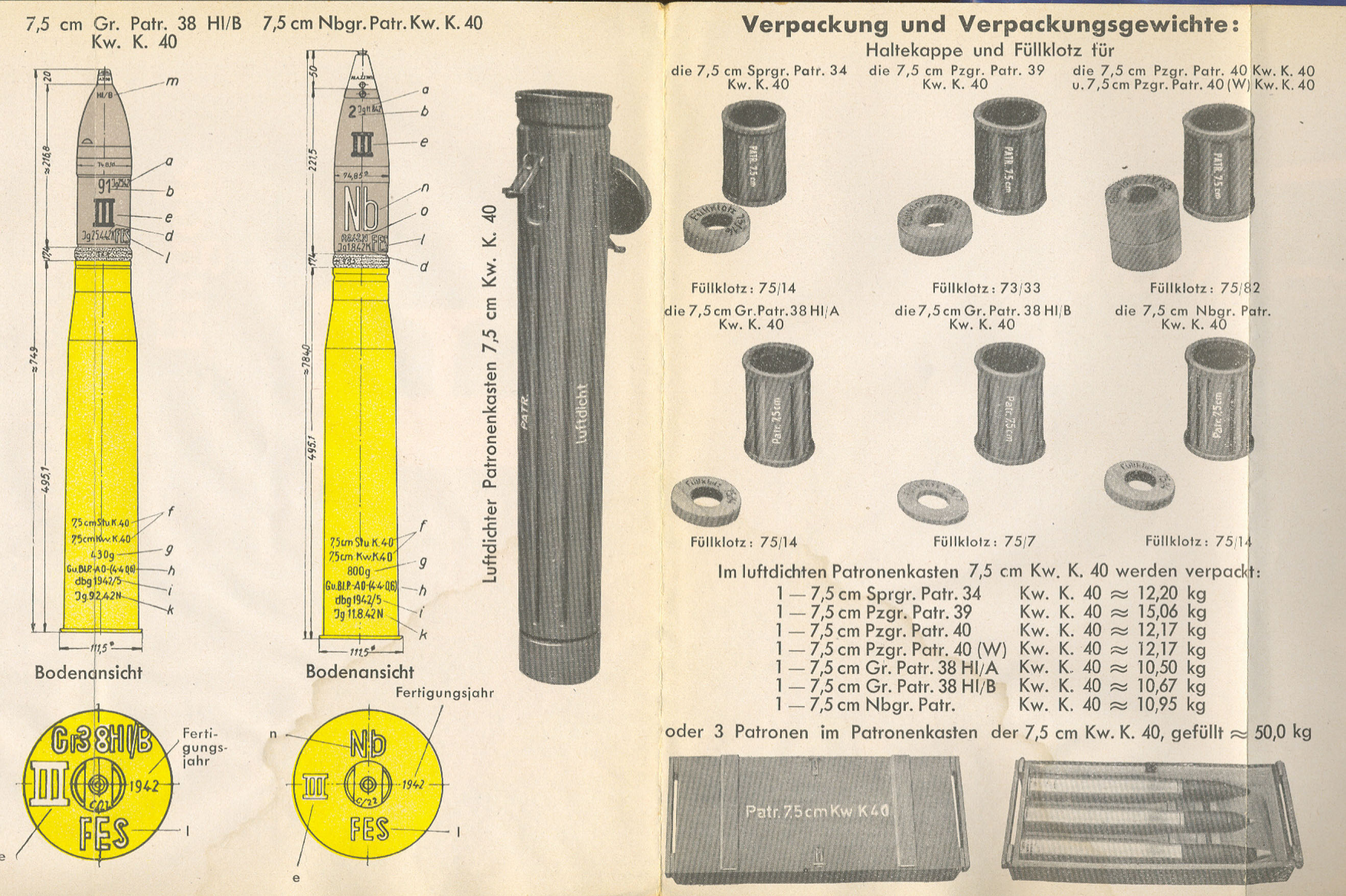 La Pzgr. 39 est l'obus antichar standard, avec un corps en acier. Classé APCBC-HE-T, cela indique qu'il est doté d'une coiffe de pénétration, d'une ogive balistique, d'un traçant et d'une petite charge explosive, de 18g, destinée à exploser 0,15 seconde après impact dans l'intérieur du véhicule ciblé.