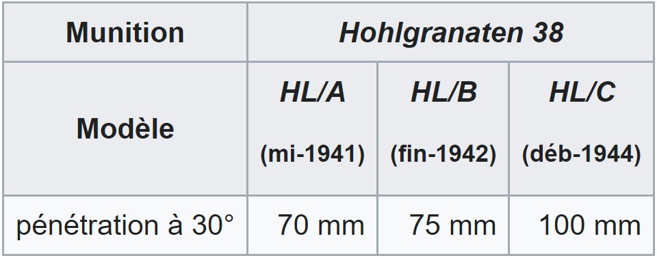 Utilisant non la vitesse cinétique mais un effet chimique, plusieurs modèles de munitions HEAT à charge creuse furent développés. Efficace à toutes distances, leur effet pâtit néanmoins de la rotation balistique du canon et de sa trop forte vitesse initiale, qui rend cette munition des plus imprécises au-delà de 500m environ. La munition sera peu utilisée pour le PaK 40.