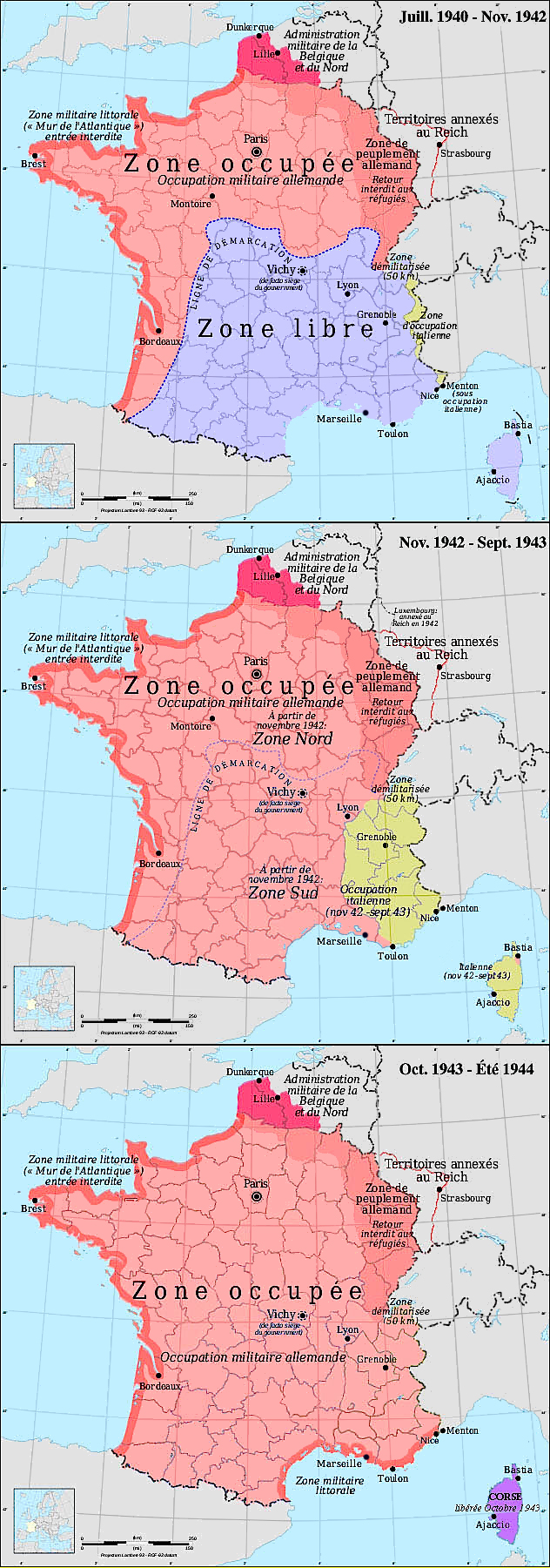 Si le Gouvernement français, siégeant alors à Vichy en zone libre, exerce sa souveraineté sur l'ensemble du territoire, dans les faits les conditions d'armistice donnent de larges pouvoirs aux autorités allemandes en zone occupée. Elles restreignent ainsi fortement le passage d'une zone à l'autre avec l'obligation de posséder un laissez-passer.