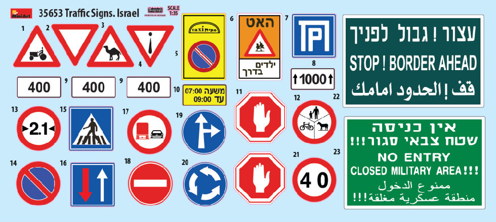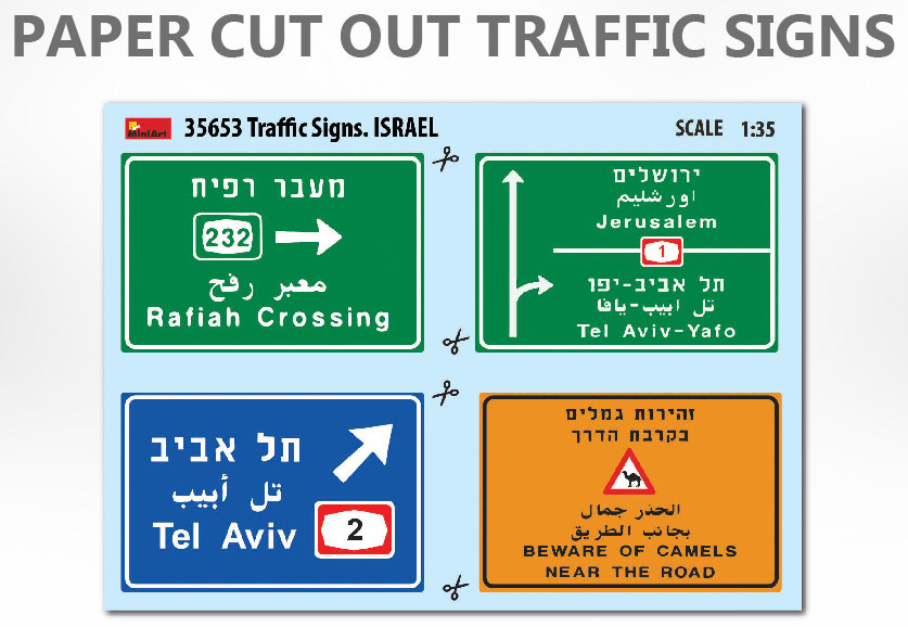 Il s'agit d'un kit de montage de maquette en plastique à l'échelle 1/35. Le kit contient des modèles de panneaux de circulation.