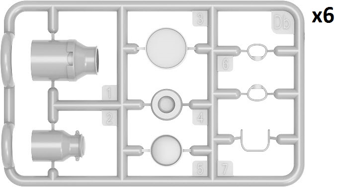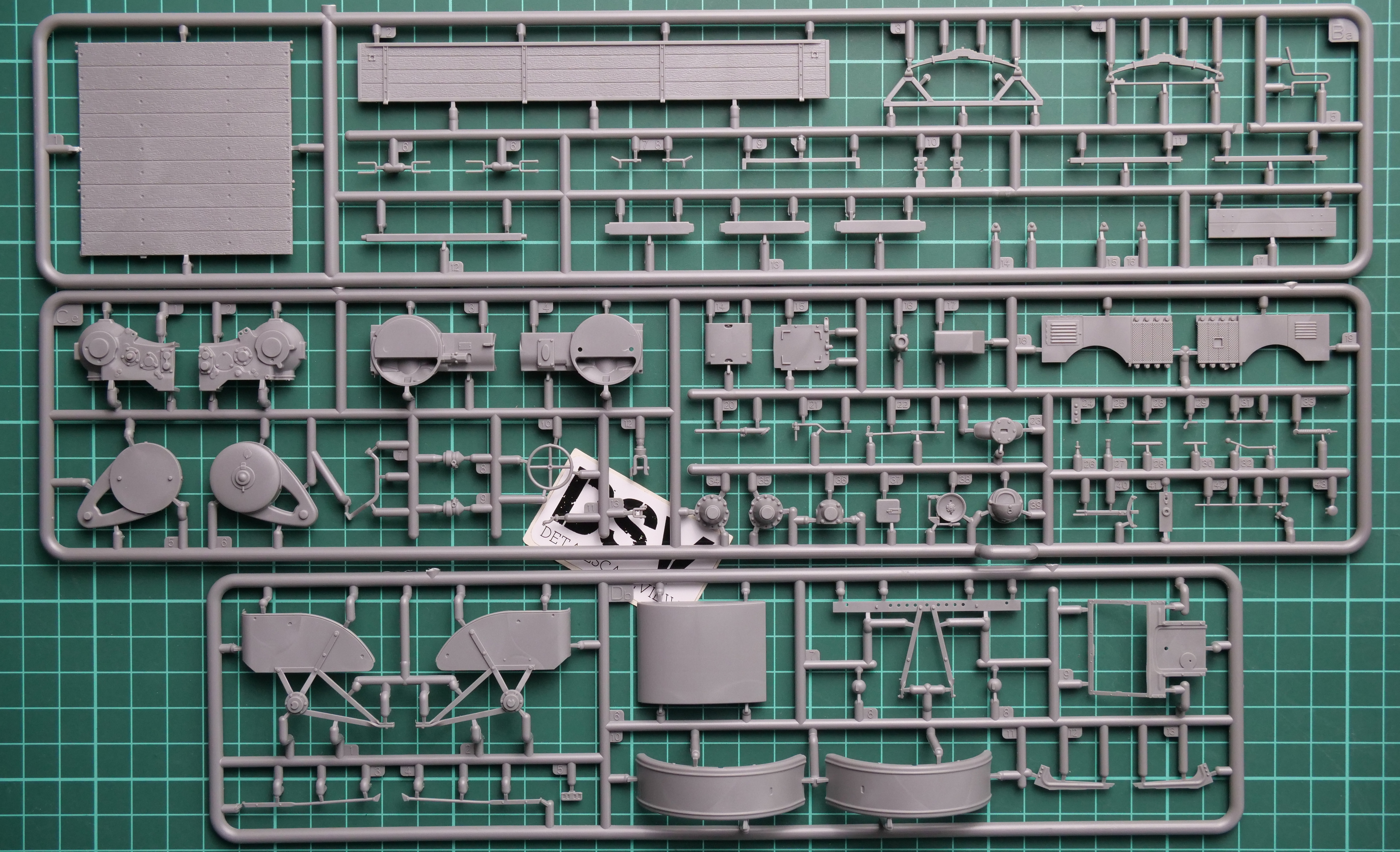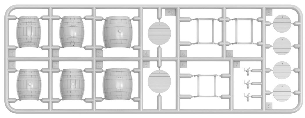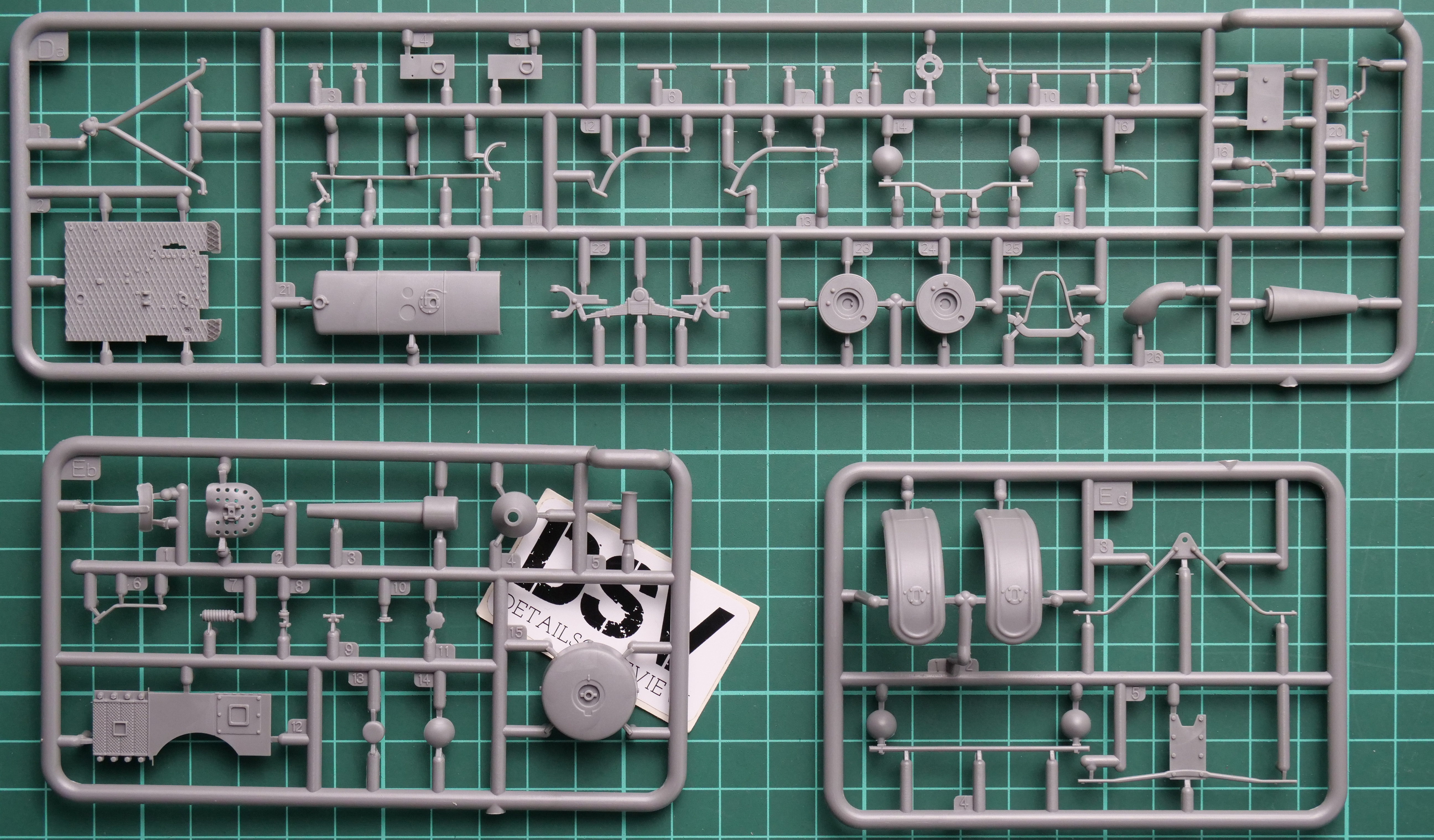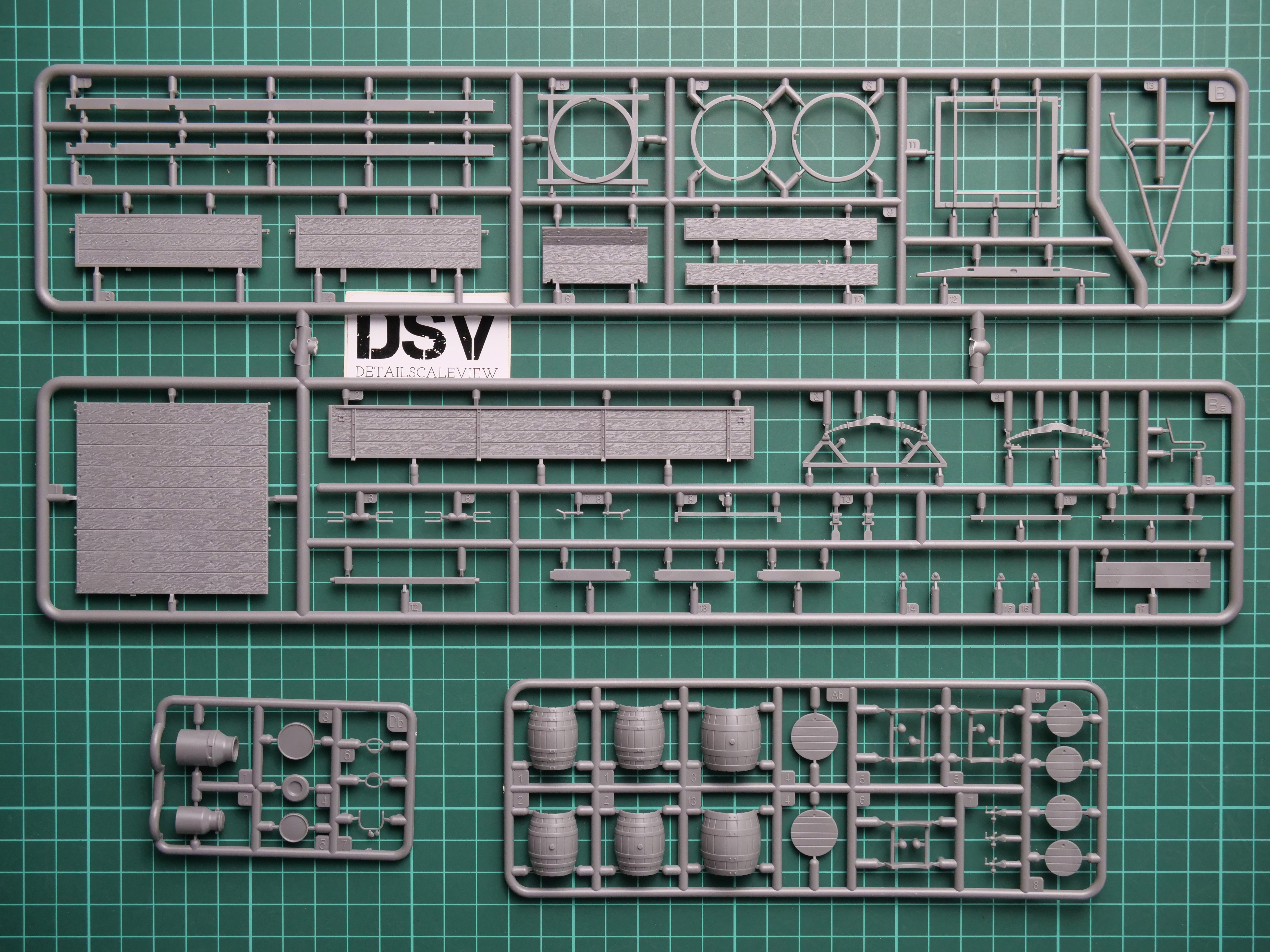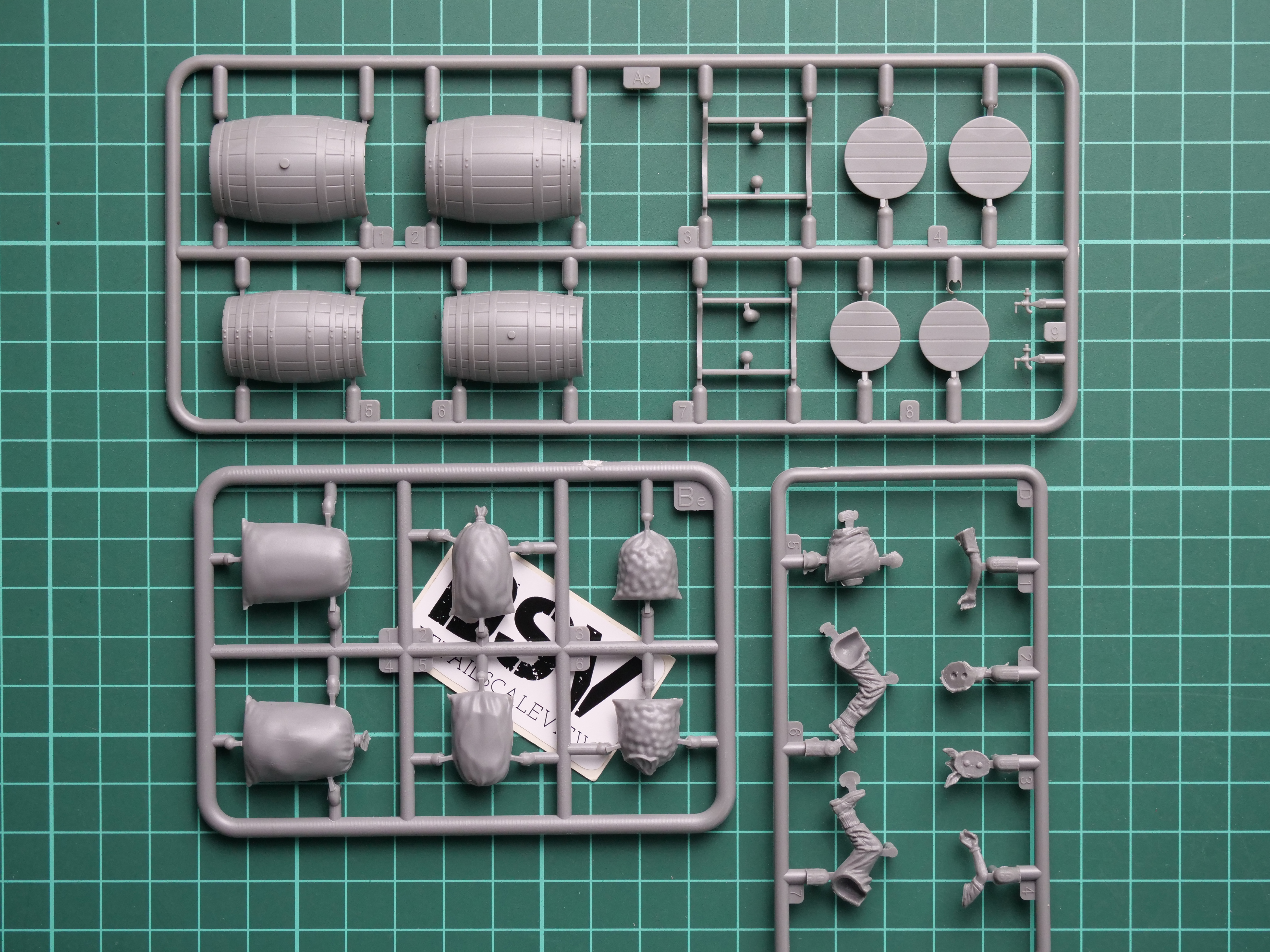Ici vous pouvez voir plusieurs grappes avec des sacs, des barils et une figurine de pilote. Il est bon d'obtenir ces articles dans un emballage standard car ils amélioreront l'apparence du modèle.