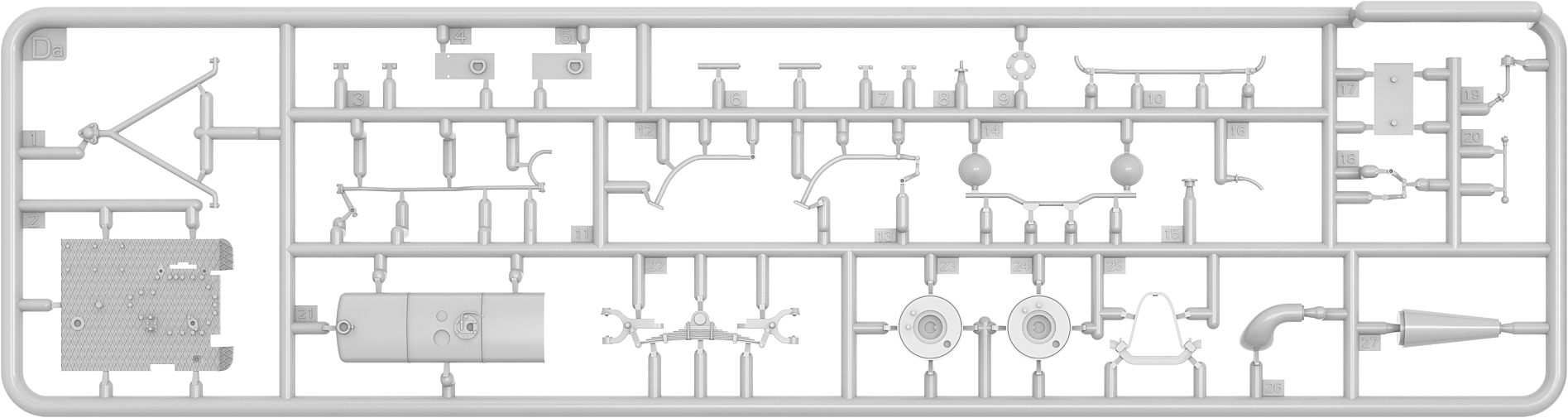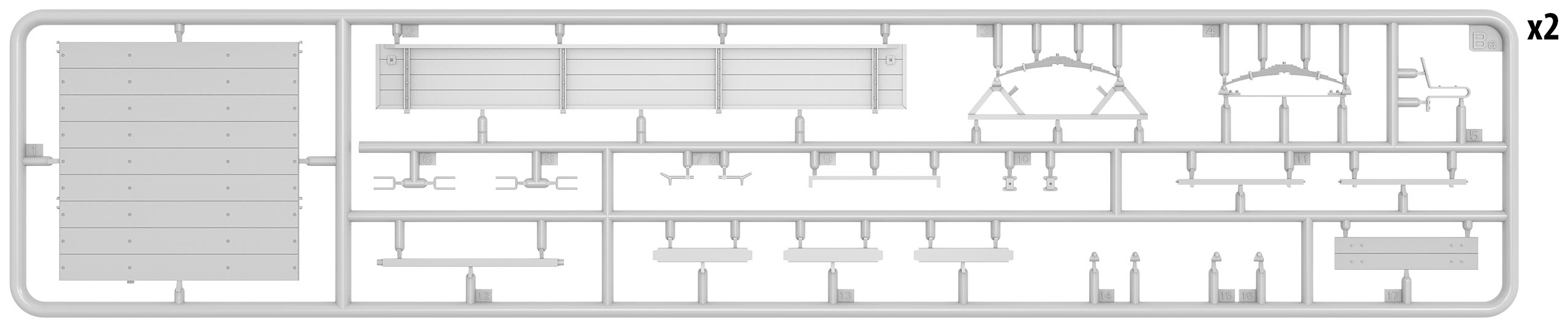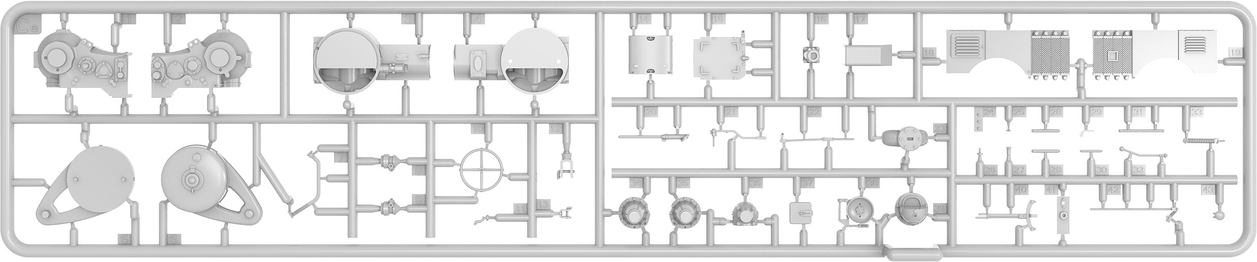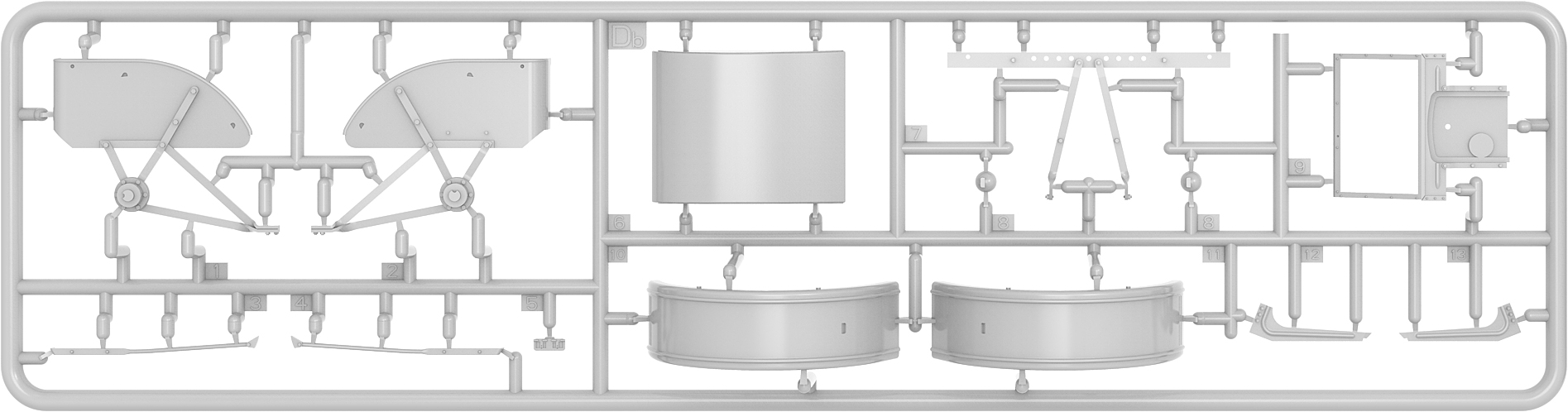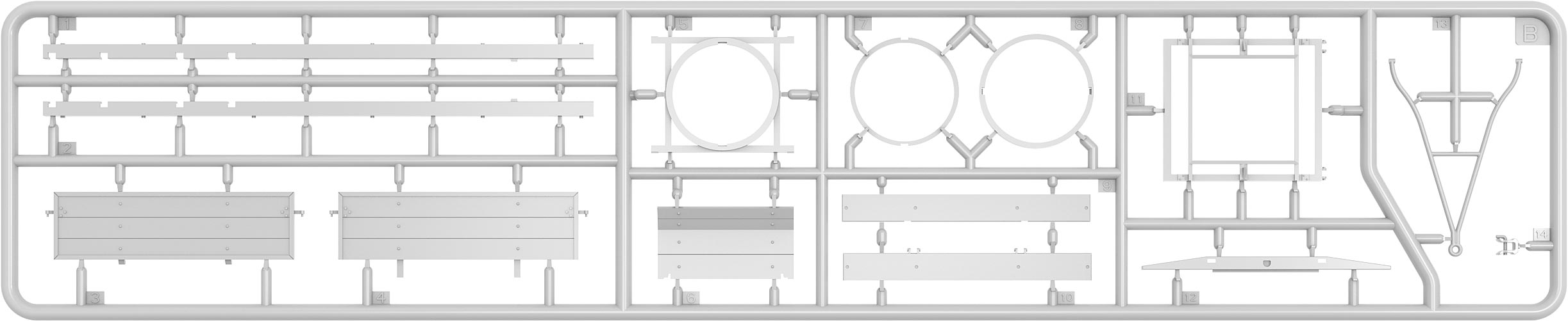 Ici vous pouvez voir plusieurs grappes avec des sacs, des barils et une figurine de pilote. Il est bon d'obtenir ces articles dans un emballage standard car ils amélioreront l'apparence du modèle.