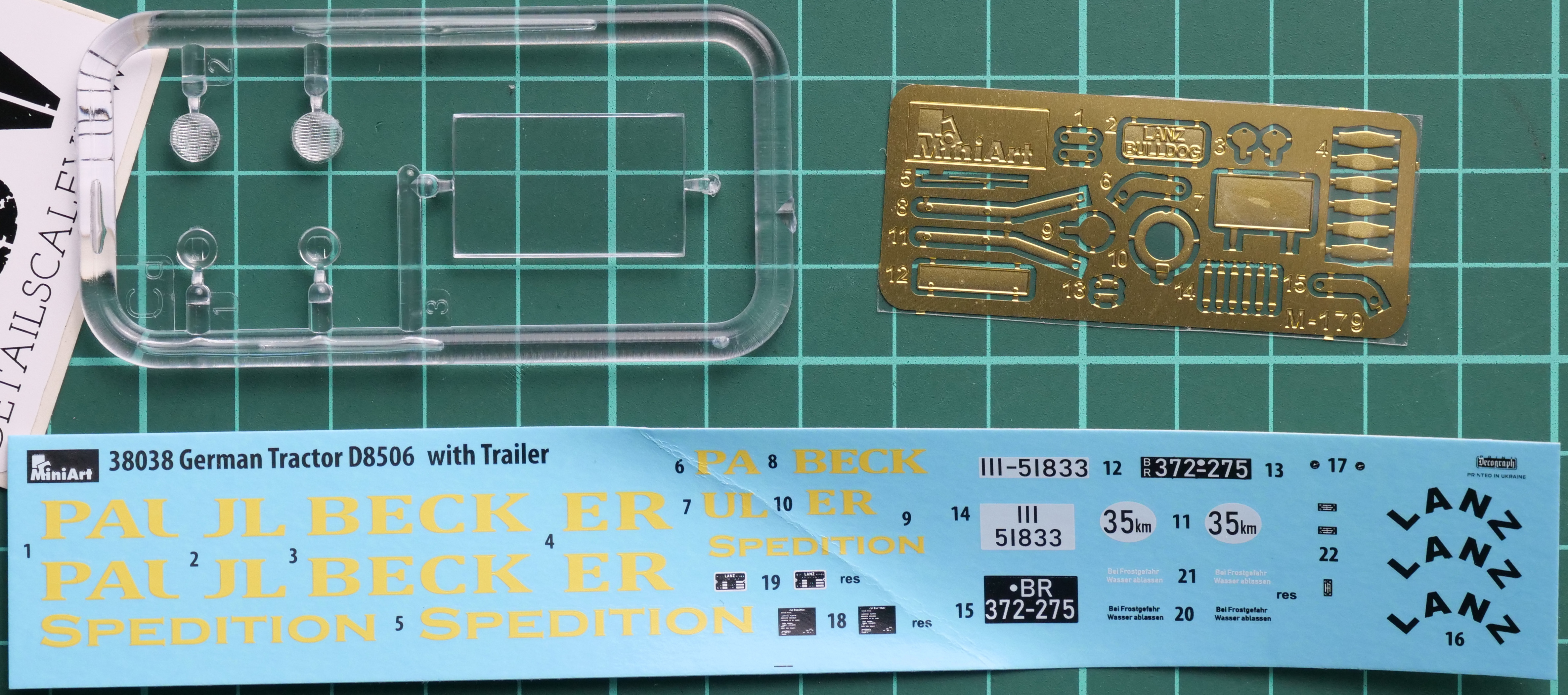 La grappe transparente est emballée avec des décalcomanies. La qualité du moulage semble bonne. La feuille de décalcomanies provient de Decograph, vous ne devriez donc pas vous soucier de la qualité d'impression. Vous pouvez voir tous les marquages sur la photo ci-dessous. La planche de photo-découpe est fournie dans l'enveloppe spéciale.