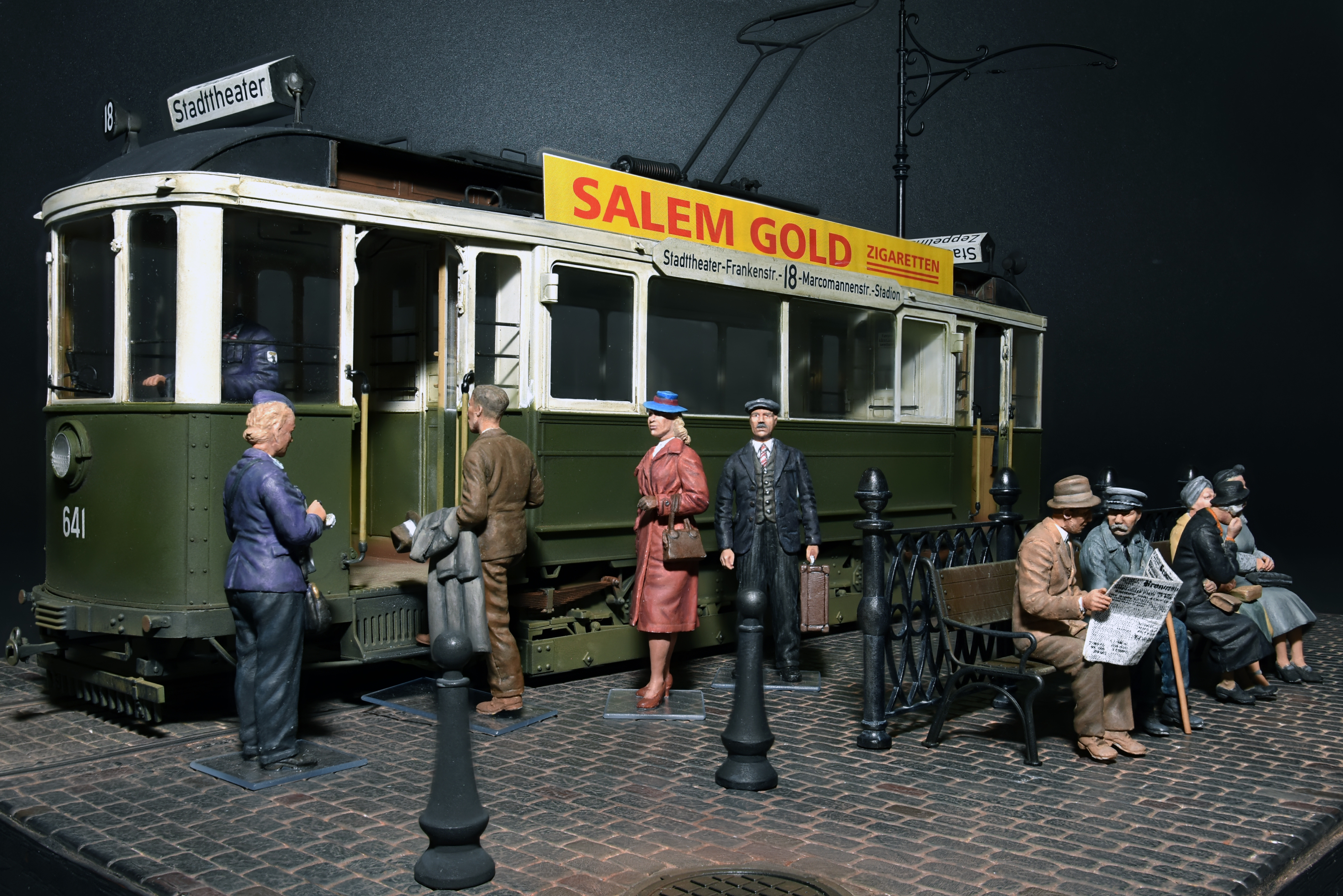 MiniArt a élargi sa flotte de modèles de tramways à succès. La 3e variante fait battre plus vite le cœur du fabricant de dioramas, car elle comprend des passagers pour le tramway, des conducteurs et des accessoires de rue tels qu'un banc et une plaque d'égout en prime.