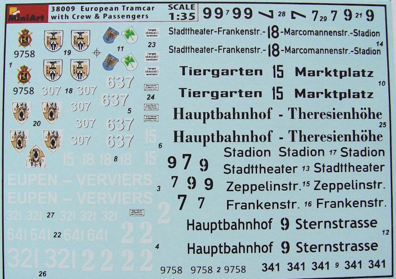 Il s'agit d'un kit de montage de maquette en plastique à l'échelle 1/35. La boîte contient des modèles de tramway avec supports de tramway, base, accessoires de rue, équipage de tramway avec passagers.