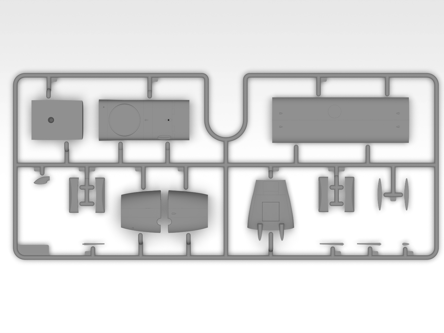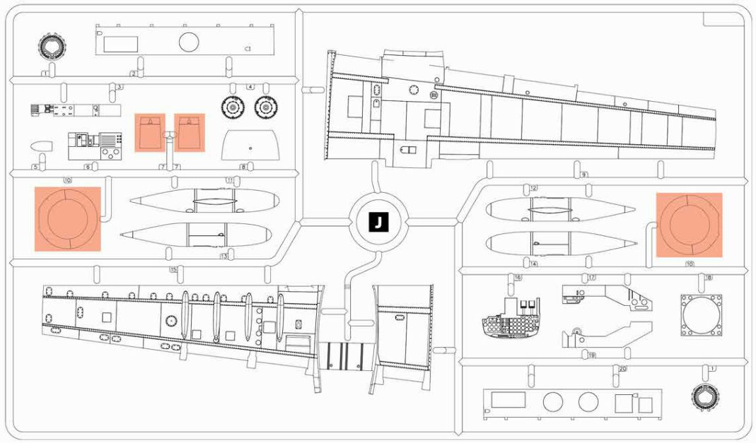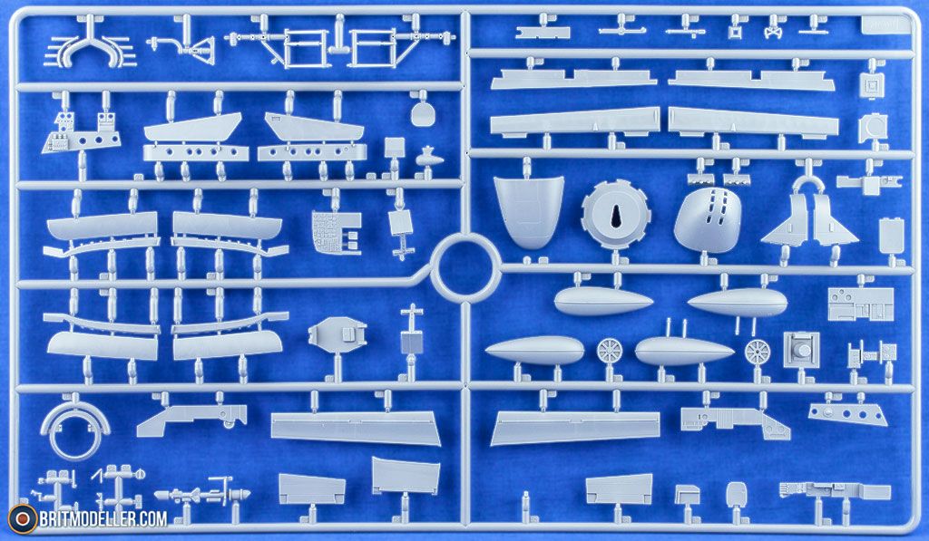 La cellule principale est apparemment complète, à l'exception de quelques antennes et des nouveaux accessoires à pales larges, et si vous avez été prudent avec la colle lors de l'assemblage des moteurs, ces derniers devraient encore tourner une fois terminés. Les 4 pylônes par aile sont chacun constitués de 2 parties et doivent avoir des trous de 0,8mm percés dans leur surface inférieure pour une utilisation ultérieure, ensuite, vous devez choisir quoi mettre sur les pylônes, à l'aide d'un schéma de chargement fourni, ou à partir de vos propres références.