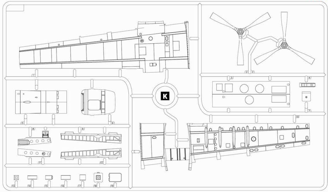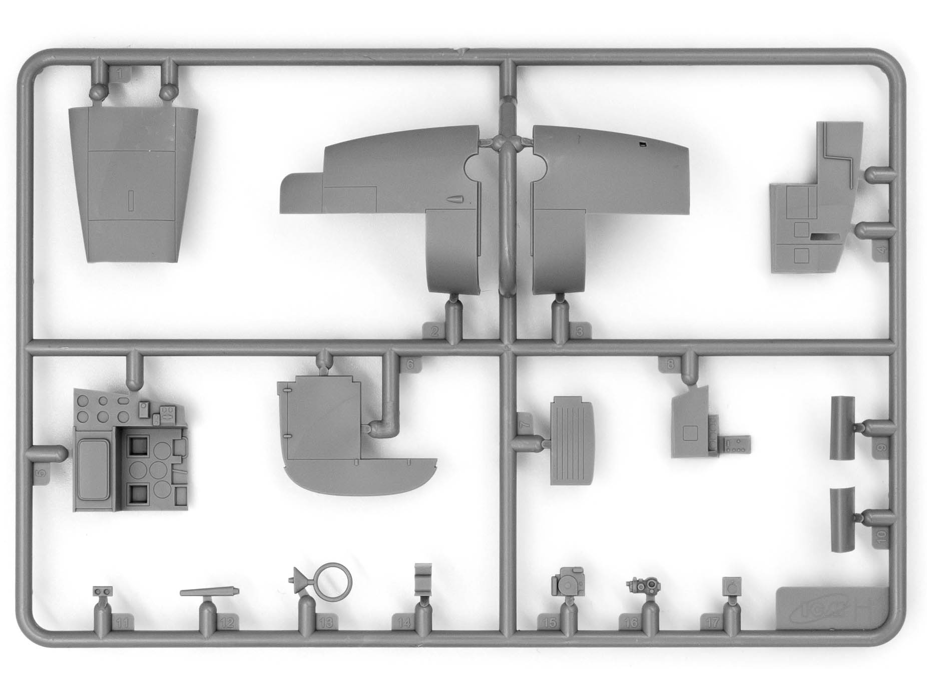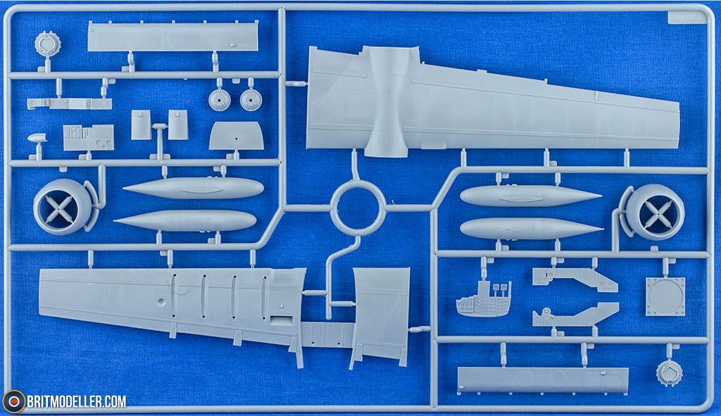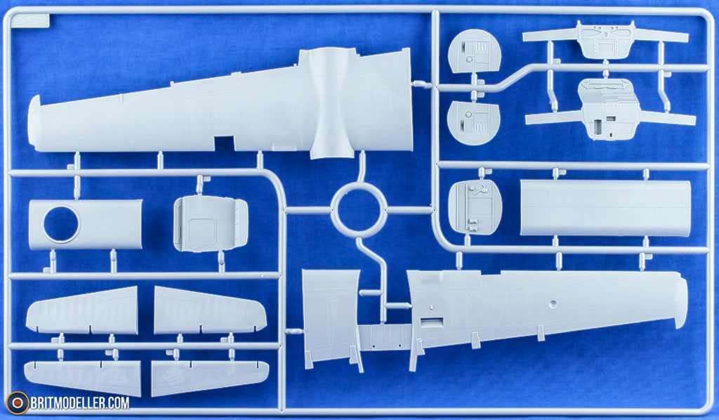 La construction commence par la charge de bombe interne, qui est ensuite placée dans la moitié bâbord du fuselage avec quelques panneaux de détail et des cloisons. L'ancien poste de mitrailleur et le cockpit viennent ensuite, créant le siège du pilote, le tableau de bord (avec des décalcomanies d'instruments), console centrale avec quadrant des gaz avant d'ajouter ceux-ci et les 2 colonnes de commande au sol. Le compartiment arrière est construit autour du longeron de l'aile avant avec un ensemble d'équipements radio suspendus à une paire d'élévateurs et à une paire de longerons d'aile, vous devrez donc peindre les détails au fur et à mesure. Après cela, le côté tribord du fuselage est préparé, avec le côté droit du cockpit et de la soute à bombes avec ses nervures détaillées. Avec cela et une quantité de peinture de détail, vous pouvez ensuite faire glisser le fuselage tribord sur les 2 longerons, et ce serait une bonne idée lors du montage de ces pièces de longeron de laisser la colle s'installer avec le fuselage tribord scotché en place pour s'assurer qu'ils font le bon angle lorsqu'ils sont mis en place de façon permanente.