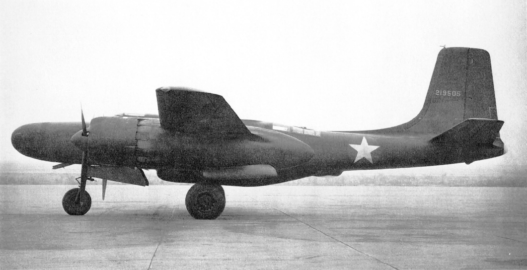 Numéro de série : 44-34586. C'est un prototype d'un A-26F à grande vitesse propulsé par 2 moteurs R-2800-83 de 2'100ch (1'600kW) entraînant des hélices à 4 pales avec un s.t. Turboréacteur General Electric J31 de 1'600lbf (7,1kN) installé dans le fuselage arrière. Le prototype a atteint une vitesse de pointe de 435mph (700km/h), mais la série a été annulée car les gains de performances n'étaient pas suffisants.