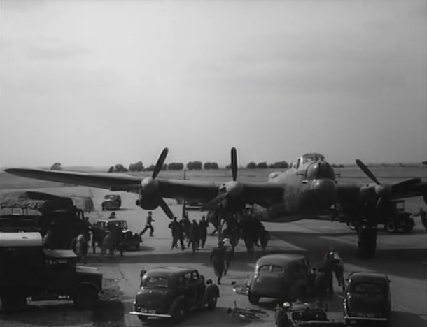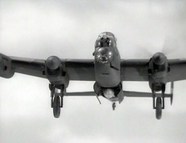 Le Lancaster est également apparu dans « Les Canons de Navarone » (1961). Dans cette scène de nuit, l'avion souffre de quelques difficultés mécaniques et doit faire un atterrissage en catastrophe.