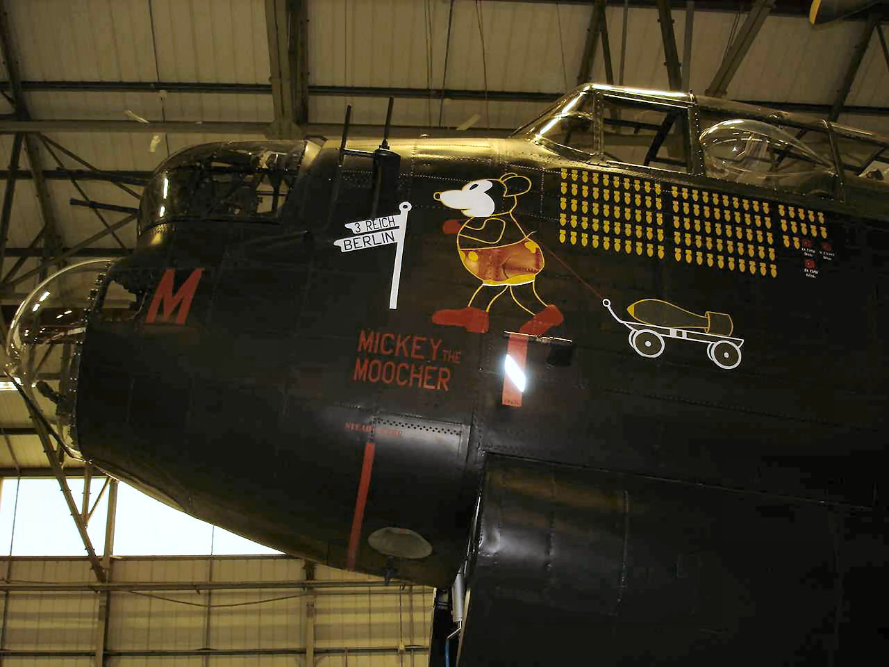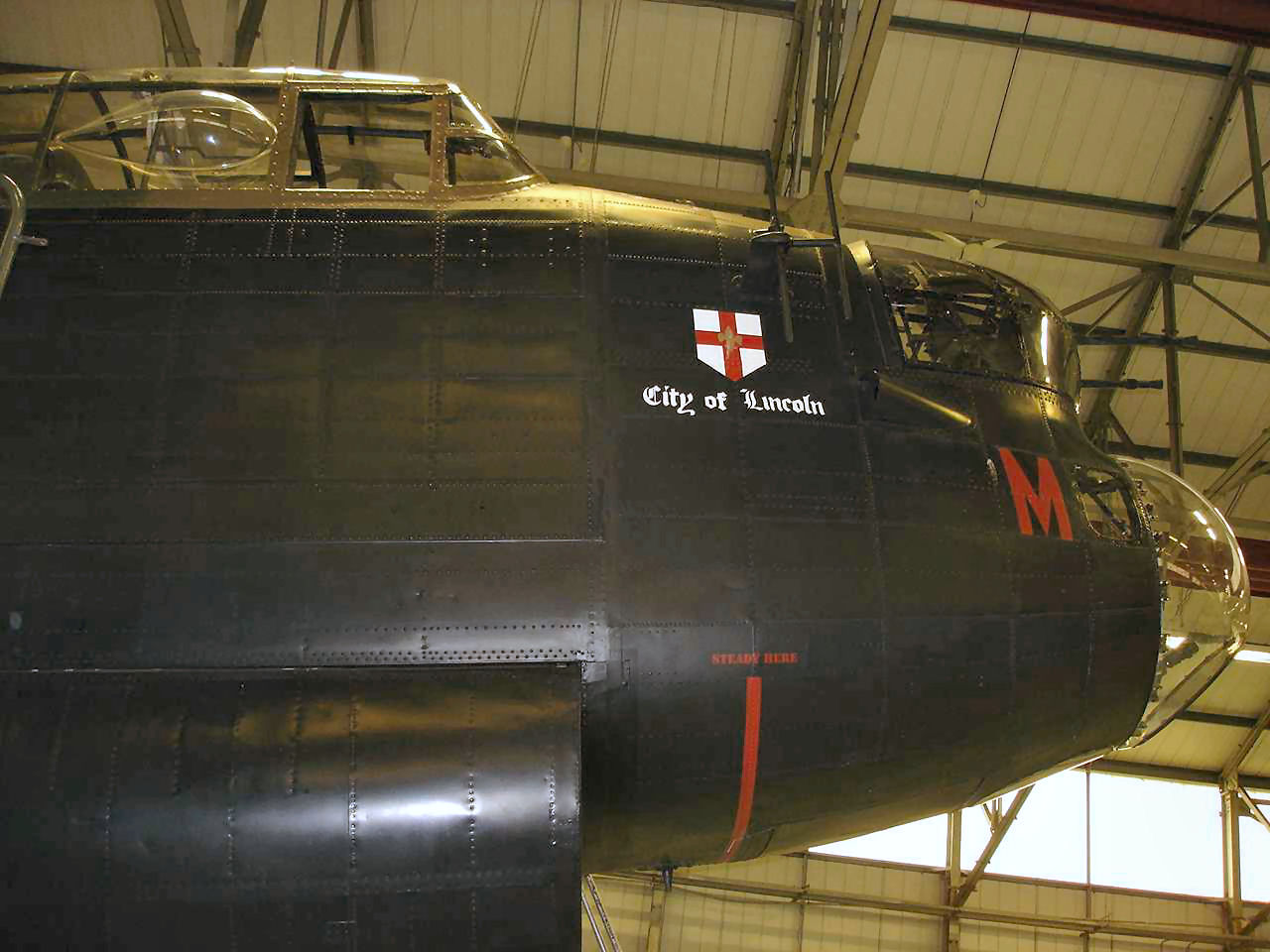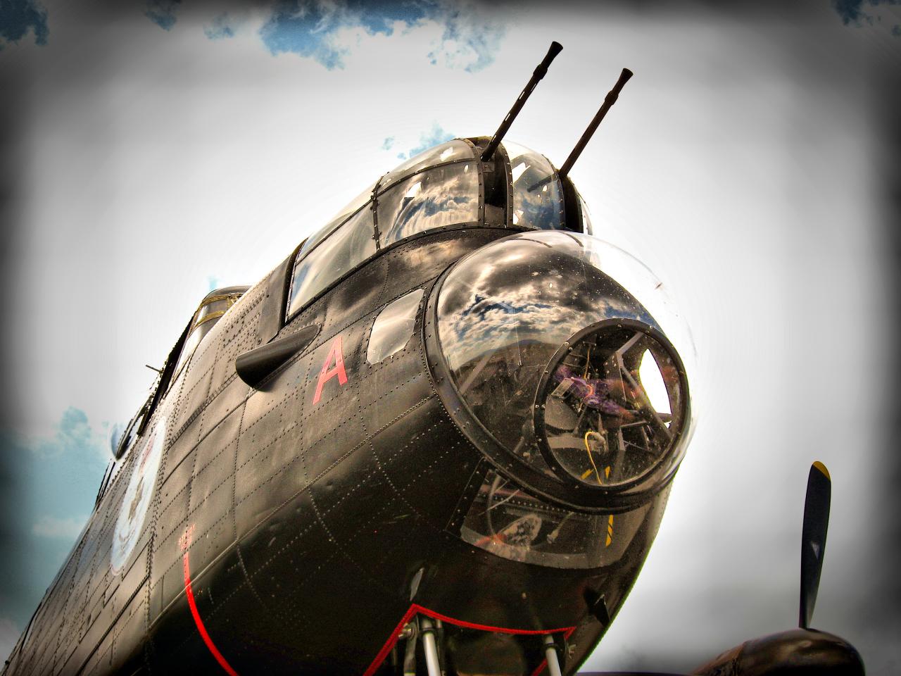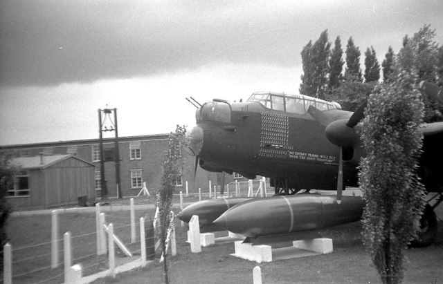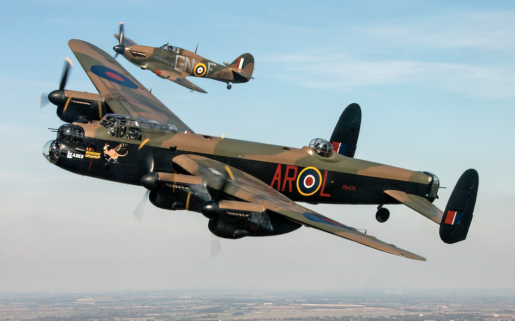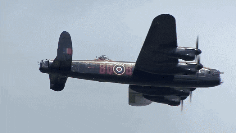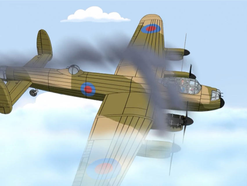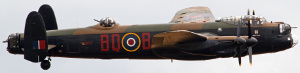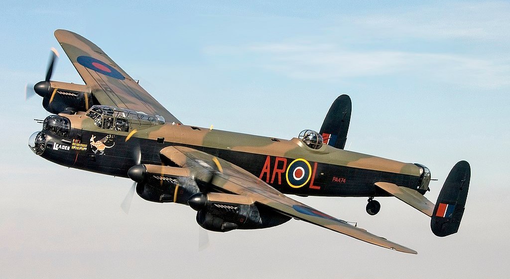 L'Avro Lancaster était un bombardier stratégique quadrimoteur britannique qui a été utilisé comme principal bombardier lourd de la RAF pendant la seconde moitié de la Seconde Guerre mondiale. L'avion typique était propulsé par un agencement de 4 moteurs à pistons Rolls-Royce Merlin montés sur les ailes, chacun entraînant un de Havilland Hydromatic de 13 pieds (4m) de diamètre, hélice à pales. Bien qu'il ne soit pas optimal, le Lancaster était capable d'effectuer le voyage de retour sur seulement 2 moteurs opérationnels, ainsi que des distances très limitées sur un seul moteur en marche. Les auteurs de l'aviation Brian Goulding et M. Garbett ont affirmé que les pilotes expérimentés de Lancaster étaient souvent capables de déjouer les chasseurs de la Luftwaffe. Il possédait des caractéristiques de vol largement favorables, ayant été décrites par Goulding et Garbett comme étant : « une machine volante presque parfaite, rapide pour sa taille et très douce ... un avion si délicieusement facile à piloter ... il y a cas de Lancaster ayant été bouclés et roulés en tonneau, à la fois intentionnellement et autrement ».