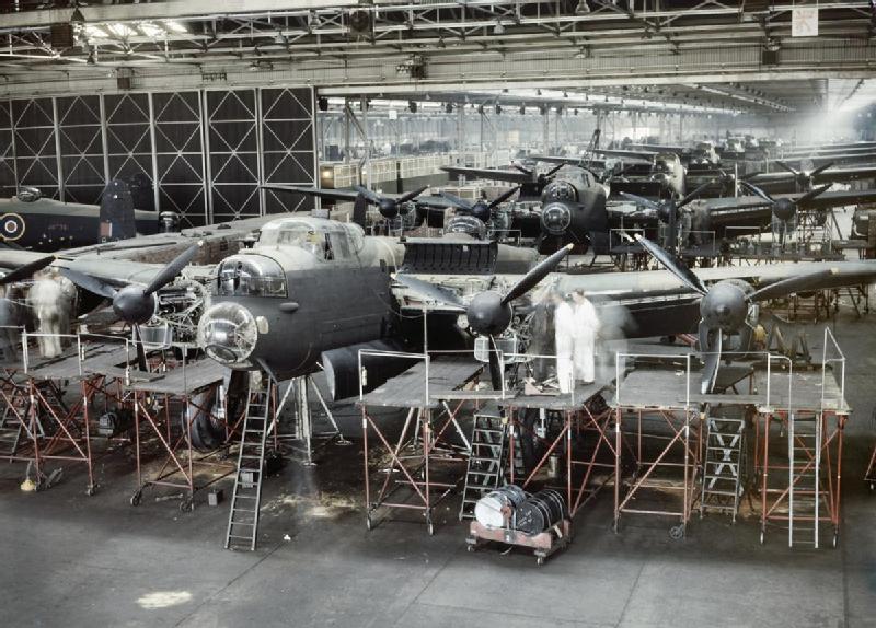 Avro a reçu un contrat initial pour 1'070 Lancaster. La majorité des Lancaster fabriqués pendant les années de guerre ont été construits par Avro dans son usine de Chadderton près d'Oldham, Lancashire et ont été testés en vol depuis l'aérodrome de Woodford dans le Cheshire. Comme il a été rapidement reconnu que la capacité d'Avro était dépassée par la demande de ce type en temps de guerre, il a été décidé de former le Lancaster Aircraft Group, qui comprenait un certain nombre de sociétés qui ont entrepris la fabrication du modèle, soit effectuer eux-mêmes l'assemblage primaire, soit produire diverses sous-sections et composants pour les autres fabricants participants.