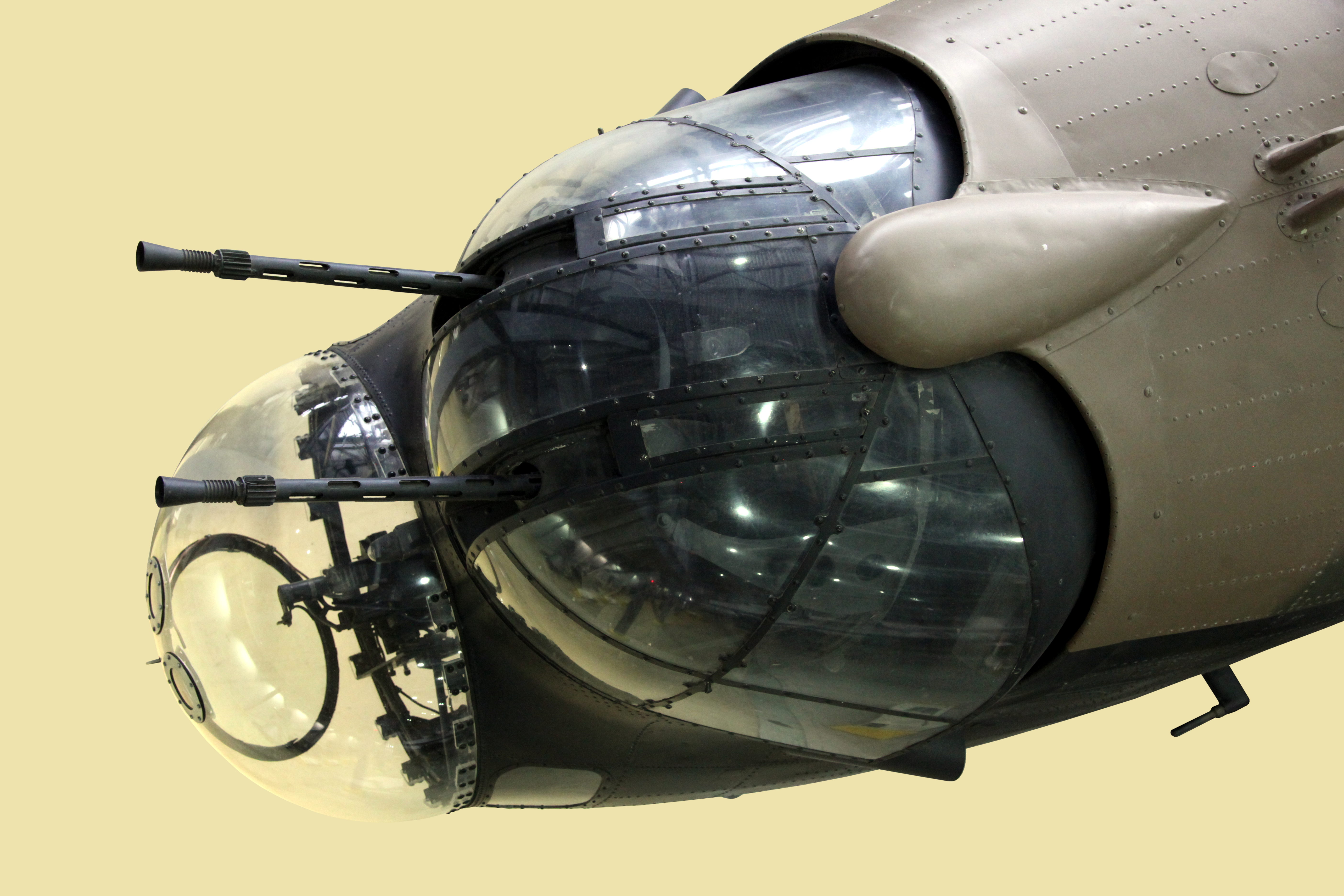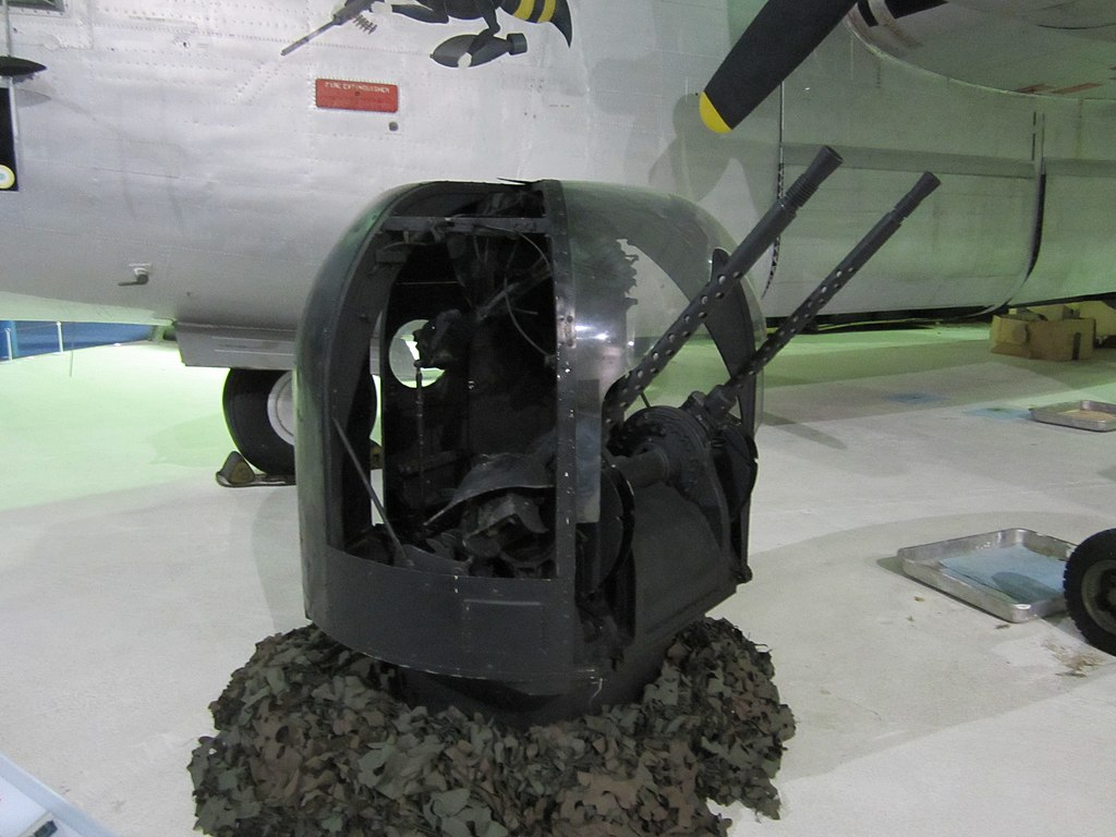 Une tourelle de canon à visée radar et à distance montée sur certaines tourelles arrière Lancaster en 1944. Identifiable par un radôme monté sous la tourelle.