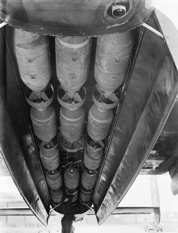 Une longue soute à bombes dégagée signifiait que le Lancaster pouvait emporter les plus grosses bombes utilisées par la RAF, y compris les superproductions de 4'000lb (1'800kg), 8'000lb (3'600kg) et 12'000lb (5'400kg), charges souvent complétées par des bombes plus petites ou incendiaires. Le « Lanc », comme on l'appelait familièrement, est devenu l'un des bombardiers de nuit les plus utilisés de la Seconde Guerre mondiale, « lâchant 608'612 tonnes longues (618'378'000kg) de bombes en 156'000 sorties". La polyvalence du Lancaster était telle qu'il fut choisi pour équiper le 617 Squadron et fut modifié pour embarquer la « bombe rebondissante » Upkeep conçue par Barnes Wallis pour l'opération Chastise, l'attaque des barrages allemands de la vallée de la Ruhr. Bien que le Lancaster était principalement un bombardier de nuit, il excellait dans de nombreux autres rôles, y compris le bombardement de précision de jour, pour lequel certains Lancaster ont été adaptés pour transporter le Tallboy de 12'000lb (5'400kg), puis les bombes antisismiques du Grand Chelem de 22'000lb (10'000kg) (également conçu par Wallis). C'était la plus grande charge utile de n'importe quel bombardier dans la guerre.