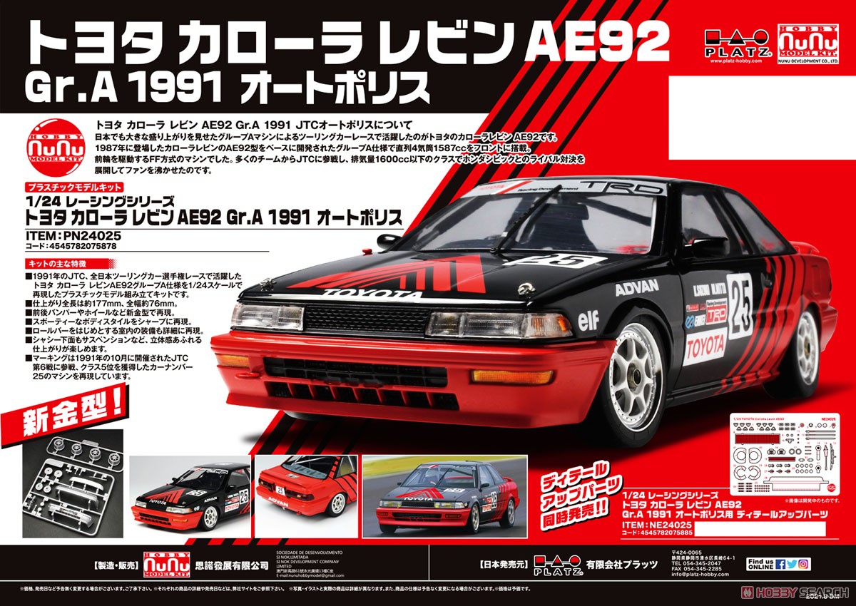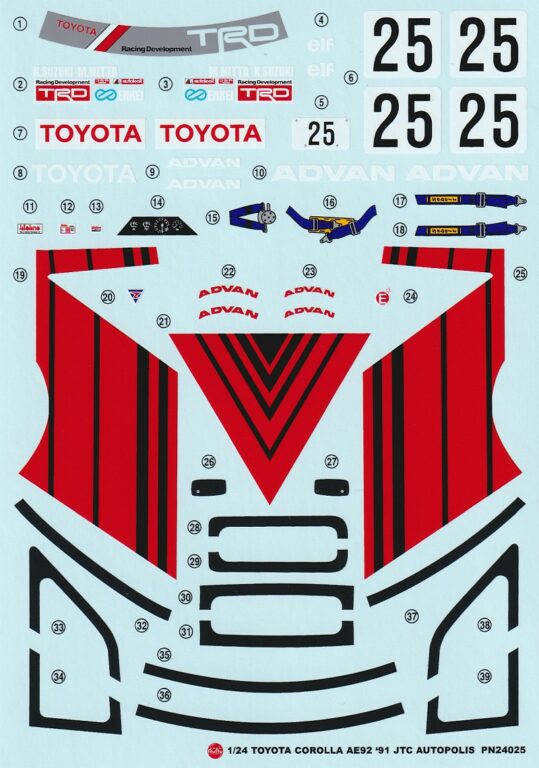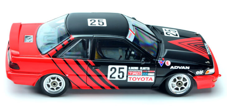 La Toyota Corolla AE92 '91 JTC Autopolis est la 3e variante de peinture de ce kit. Comme les voitures de tourisme étaient à l'origine des véhicules de série très proches, il n'est pas difficile de sortir de nouvelles versions (parfois avec de légères modifications).