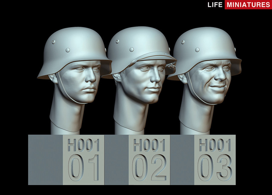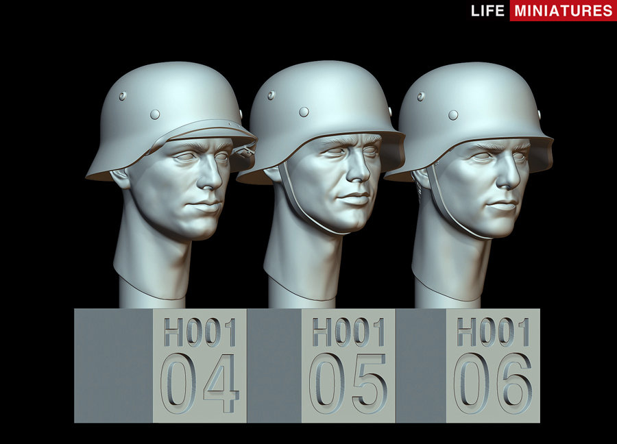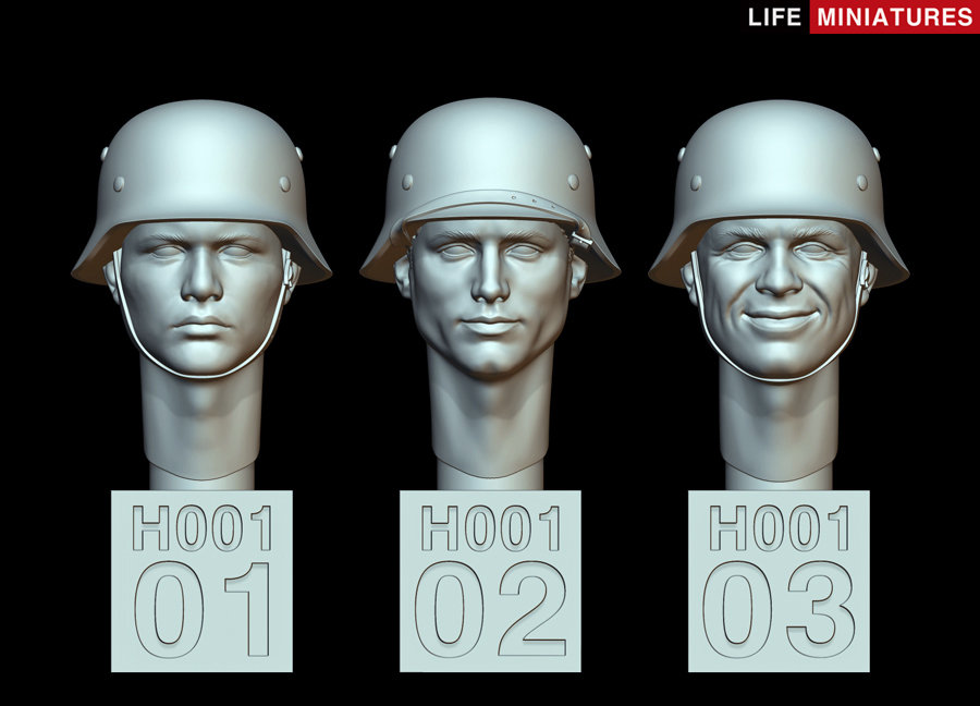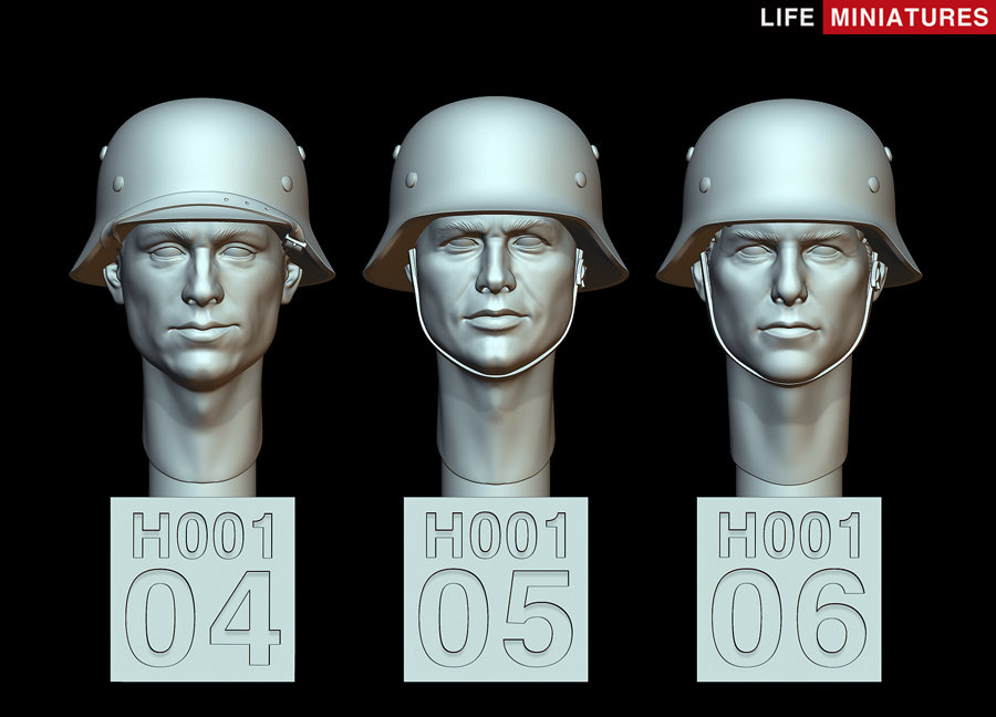 Il s'agit d'un kit en résine à l'échelle 1/35 qui reproduit 6 têtes de rechange différentes, toutes portant le Stahlhelm et chacune avec une expression différente.