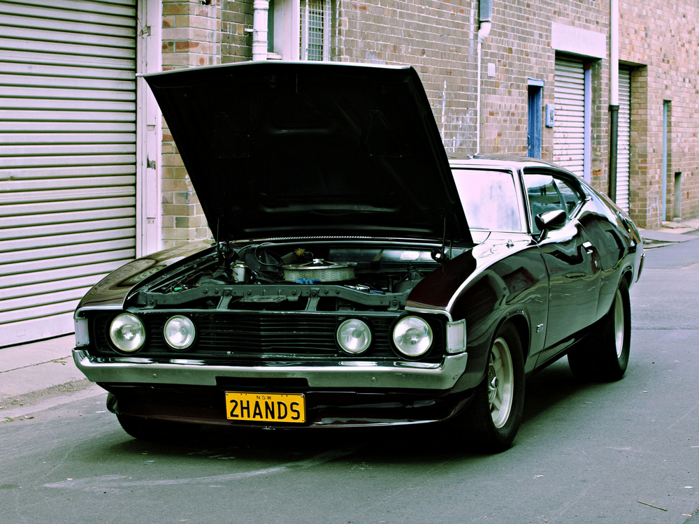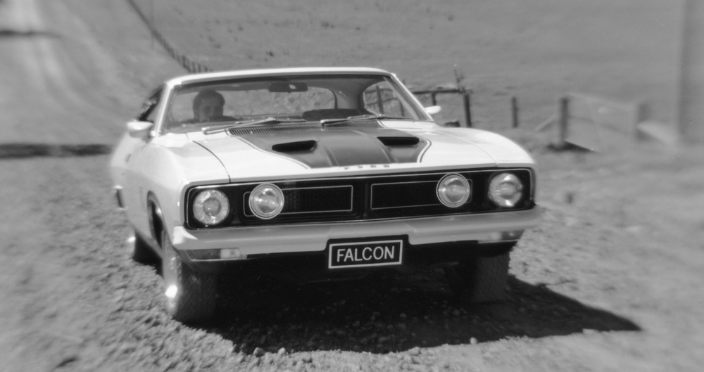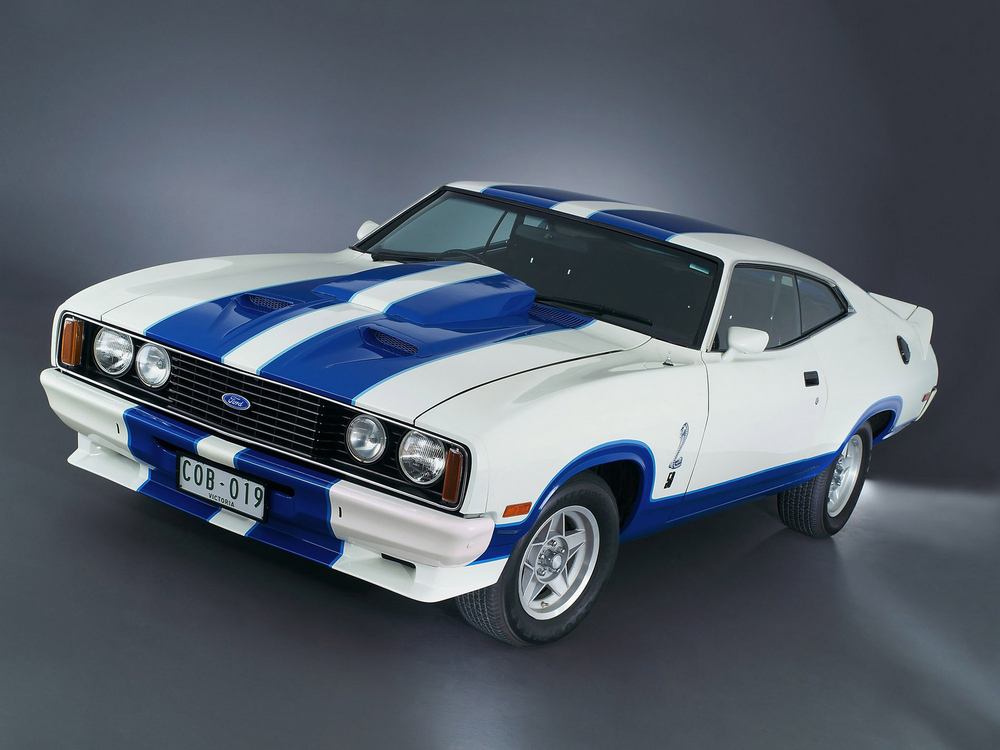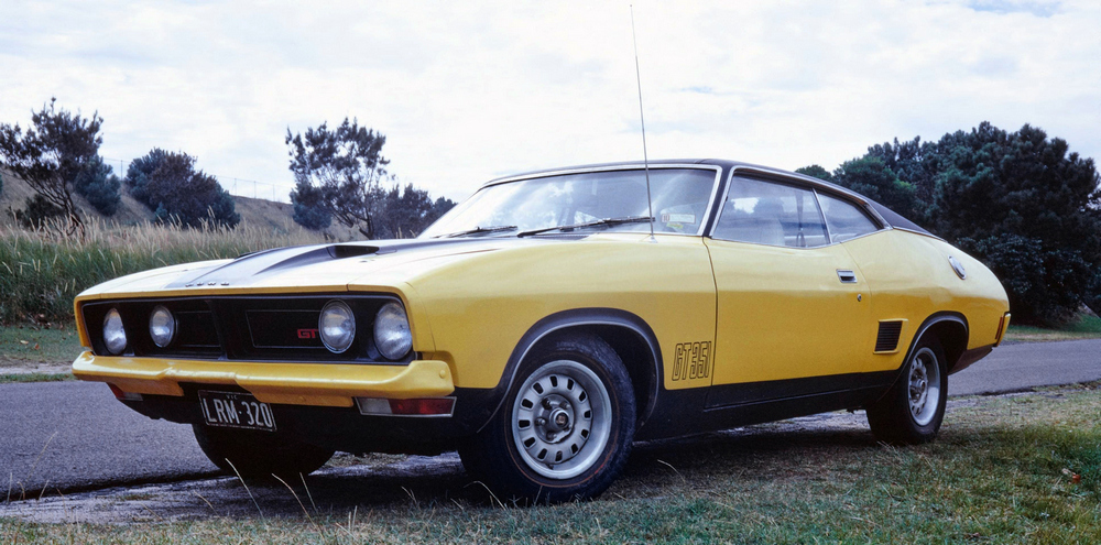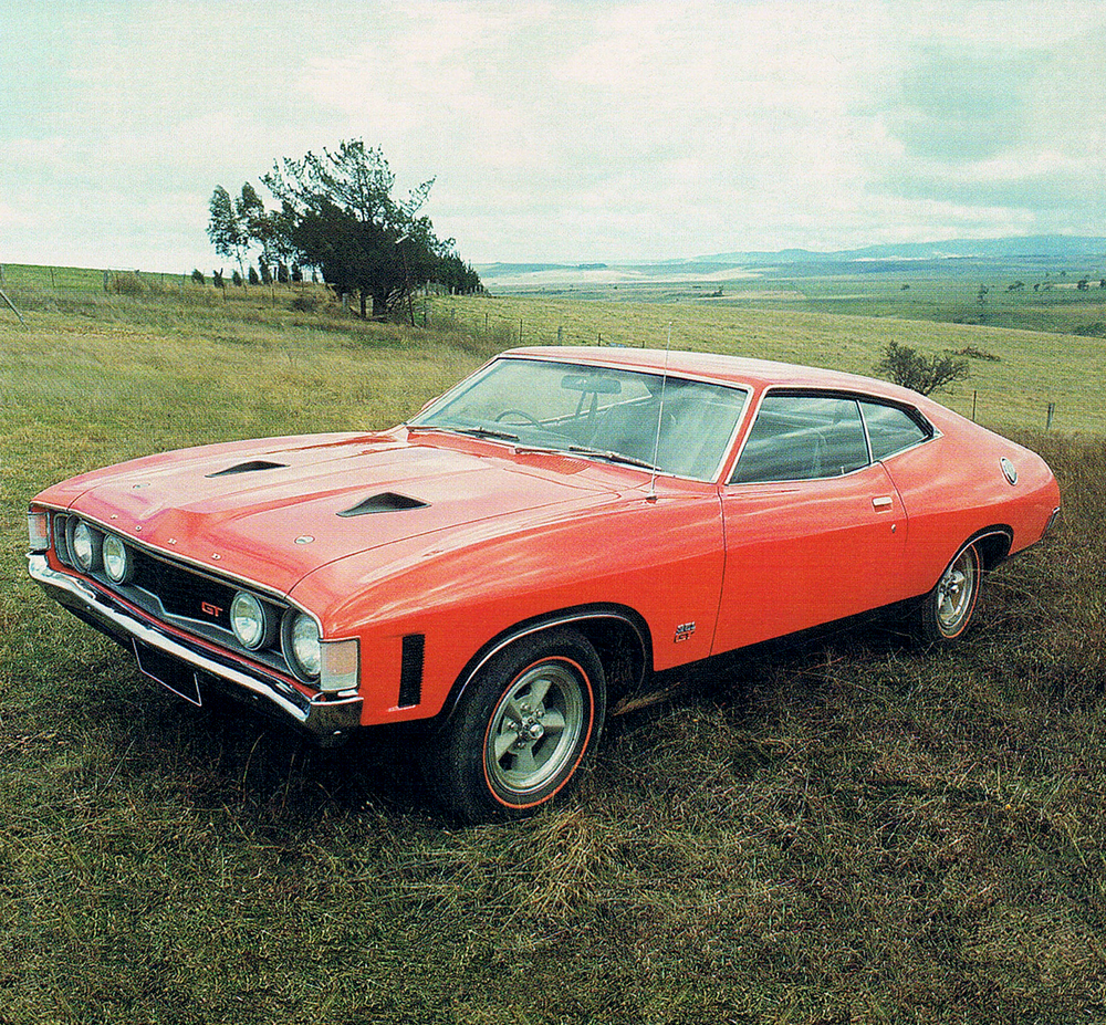 une Ford Falcon GT [XA] (1973) : à droite en arrière-plan.