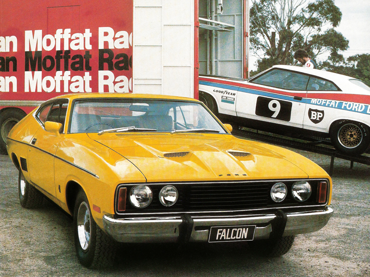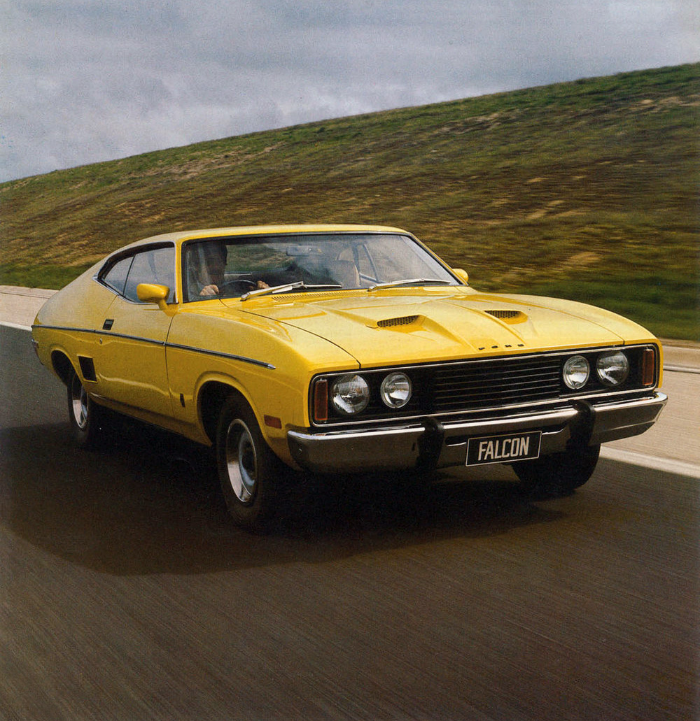 Aux États-Unis, la fin de la production de la Falcon a ouvert la voie à une contribution australienne beaucoup plus importante dans la conception des Falcon de fabrication australienne à partir de 1972, bien que pendant plusieurs années une ressemblance distincte avec la Mustang de fabrication américaine ait toujours existé. La Falcon XA, introduisant un nouveau modèle de coupé à toit rigide, est entré en scène avec sa gamme de couleurs de peinture distinctive, le violet et le prune sauvage étant populaires, souvent commandés avec une sellerie blanche ou noire. La Falcon XA à toit rigide avait une forte ressemblance avec la Ford Torino SportsRoof de 1970-1971 (les 2 voitures avaient la même tôle de plancher) et partageait ses portes à « fenêtres sans cadre » avec les variantes utilitaires et fourgons à panneaux. Les transmissions ont été reportées de la XY, bien que le moteur 250-2V ait rapidement été abandonné et que les moteurs « à part entière » de la GT-HO ne soient plus nécessaires en raison des modifications apportées aux règlements de course pour les voitures de production. Ford avait prévu une GT-HO « Phase IV » (et en a construit 4), mais l'a annulée à la suite de la soi-disant « alerte aux supercars ».