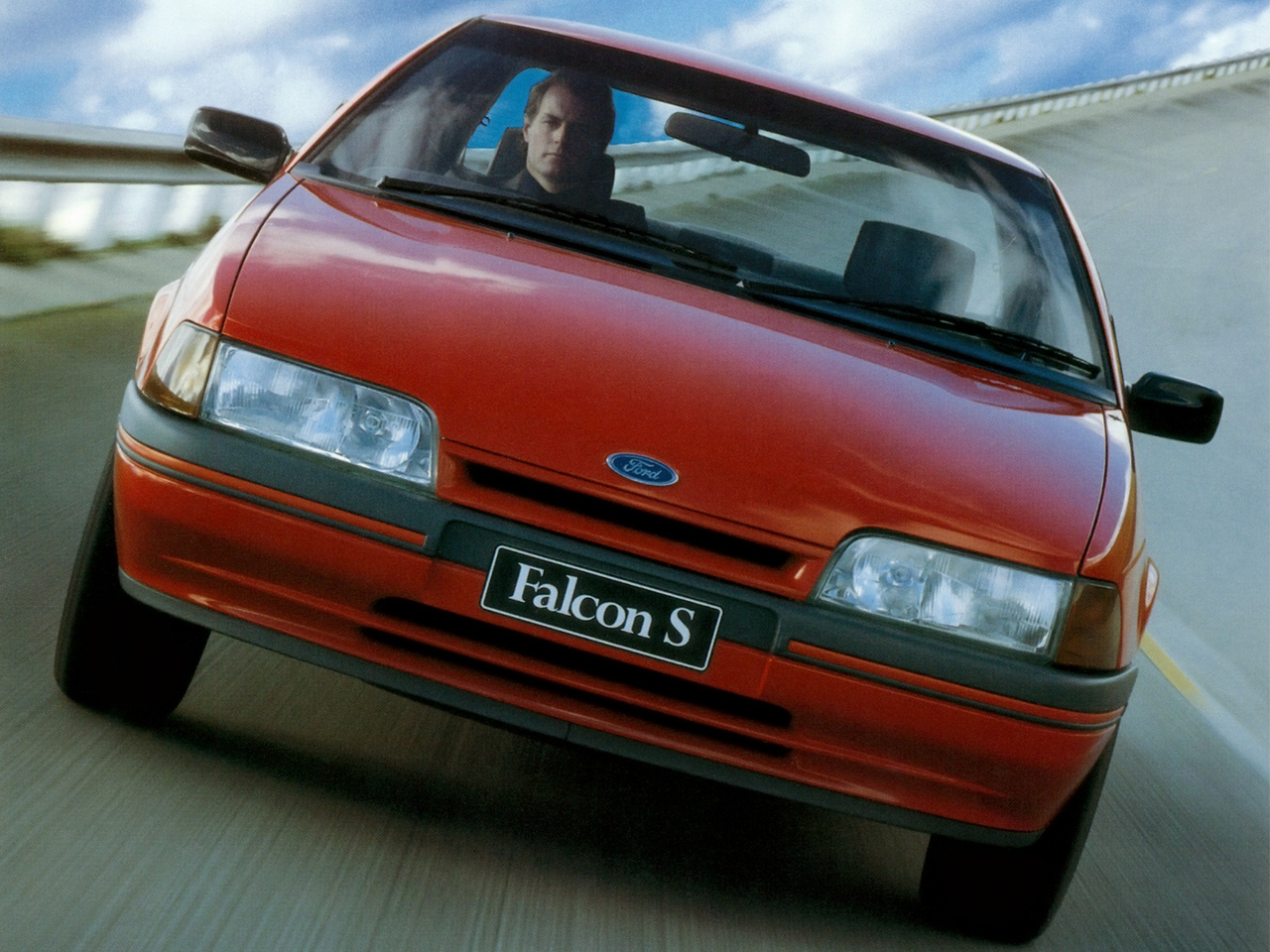 À la suite d'un développement de 700 millions de dollars australiens, la Ford Falcon EA introduite en 1988 ressemblait passablement à la Ford Scorpio européenne. Sous la carrosserie, cependant, elle restait de conception entièrement australienne et elle est considérée comme le premier modèle de Falcon à avoir utiliser des tests en soufflerie. L'EA n'était également produit que dans les styles de carrosserie berline et break, les modèles utilitaire et fourgon précédent (XF) continuant en production.