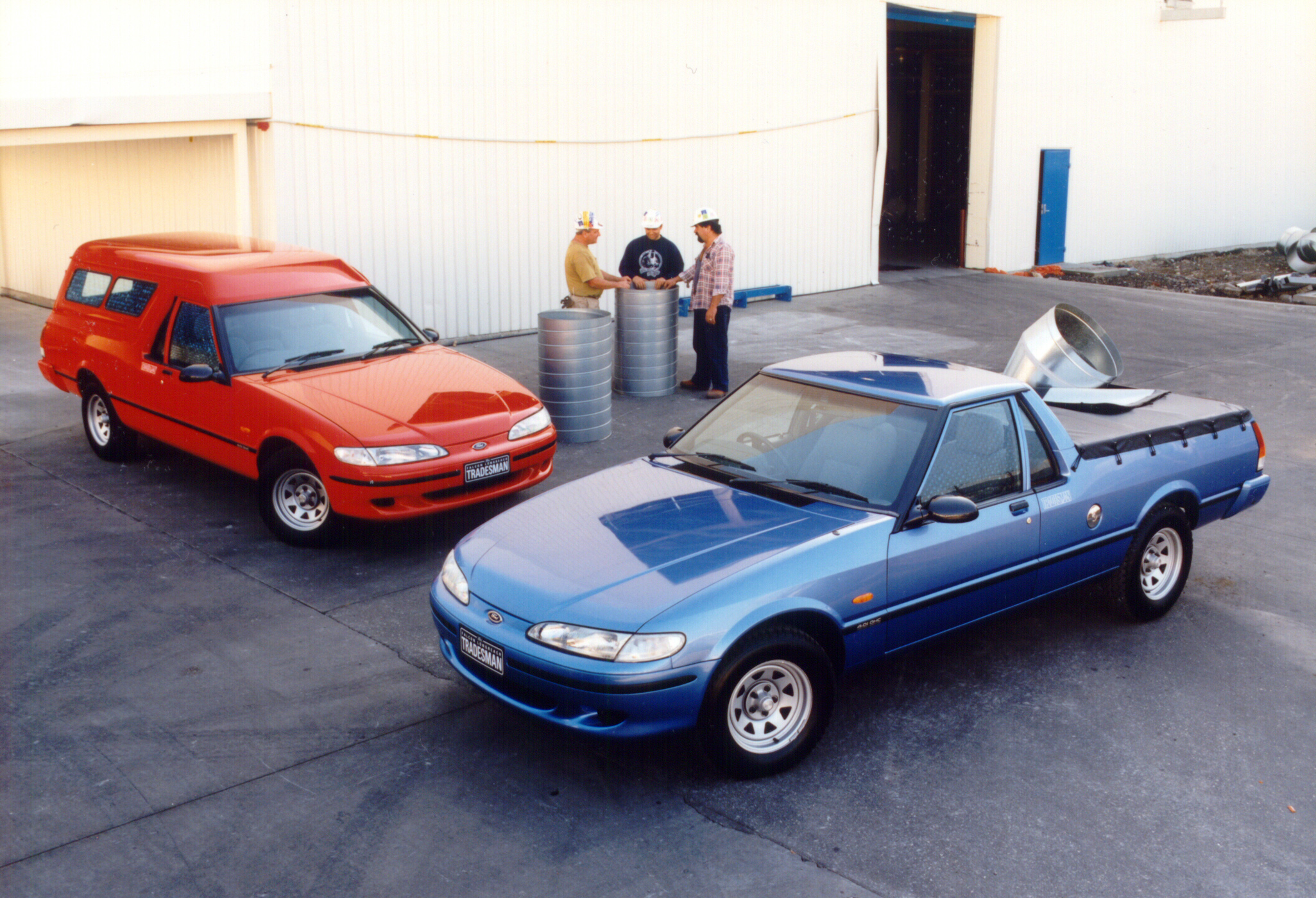 L'affection des Australiens pour les pick-ups (aussi appelé « utilitaire ») a permis, à partir de 1961, au Falcon de servir de modèle de base pour leur gamme d'utilitaires et de fourgons à panneaux, devenant rapidement reconnu par les passionnés (généralement plus jeunes) au milieu des années 1960. Au fur et à mesure que les bases des modèles berline et break de la Falcon évoluaient, les modèles pick-ups et fourgonnettes évoluaient également, bien qu'avec généralement environ 1 an de retard après leur sortie initiale sur le marché. La seule exception était la série XF, qui a duré pendant toute l'ère EA26. Alors que des prototypes de pick-up EA26 étaient réellement construits, la coque XF s'est poursuivie jusqu'à la sortie du modèle AU en 1998, obtenant en 1996 le traitement de nez de l'actuelle Falcon série EF, avec une combinaison d'intérieurs des séries XF et XE. Les pick-ups bas de gamme de la série XH n'avaient pas d'airbags, par exemple.