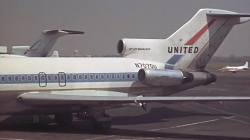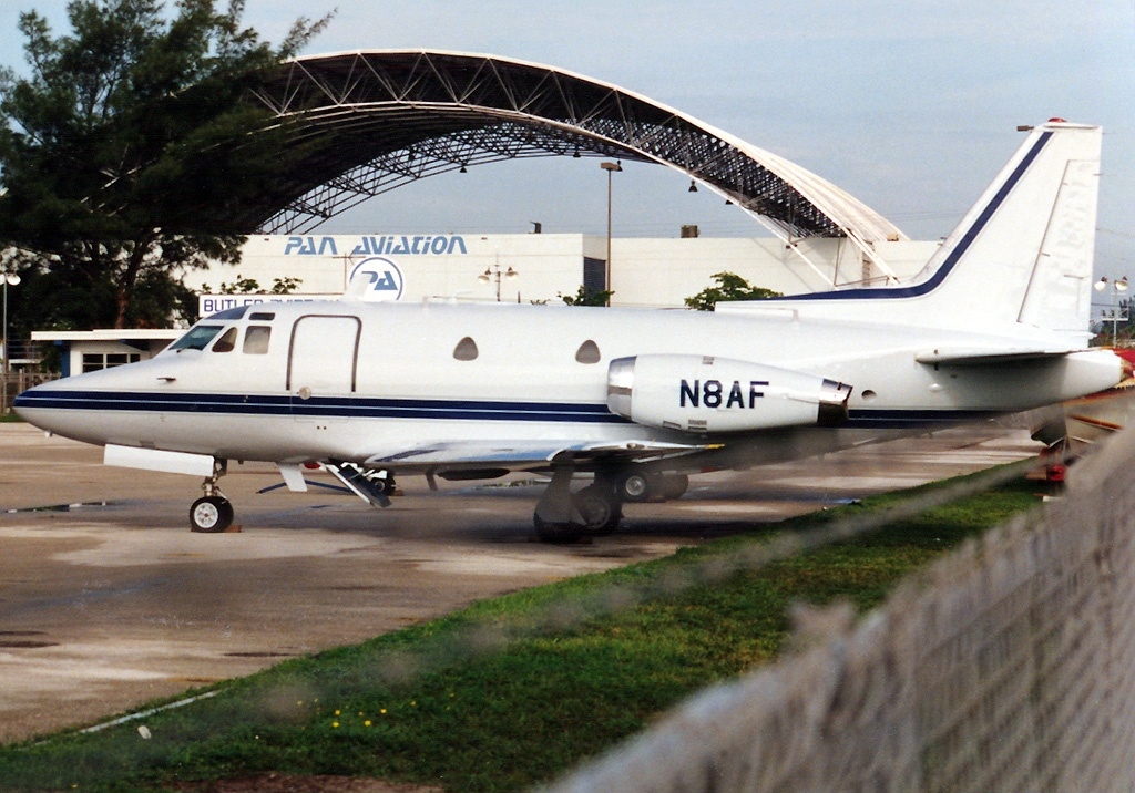 un North American-Rockwell Sabreliner : derrière à gauche d'un Boeing 727-264/Advanced.