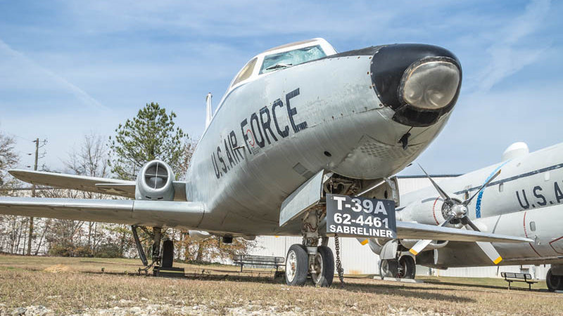 un Rockwell CT-39A Sabreliner : CT-39A série 61-0442 c/n 265-45 envoyé à l'AMARC sous le nom de TG0045 le 11 décembre 1984. Toujours dans l'inventaire AMARC (janvier 2008). L'arrière d'un Lockheed C-130H Hercules vu derrière le Sabreliner.