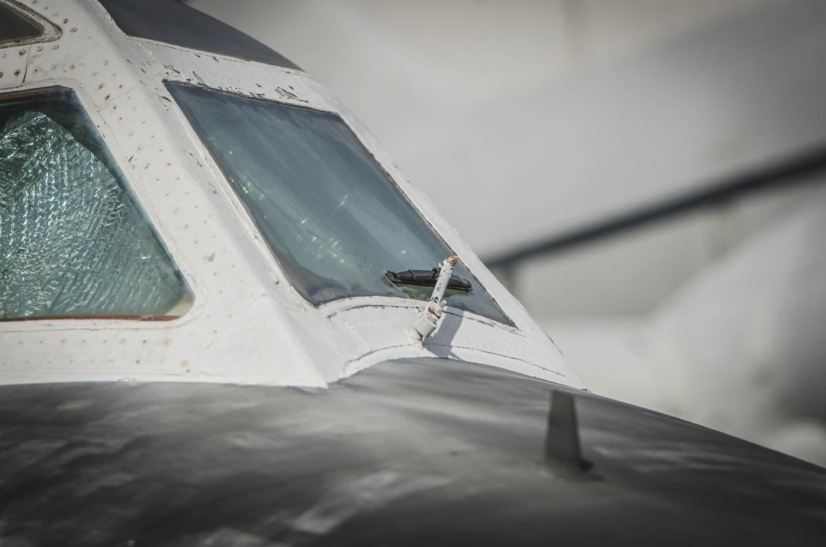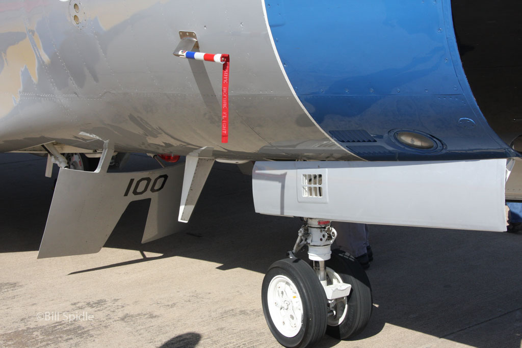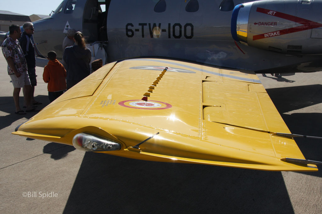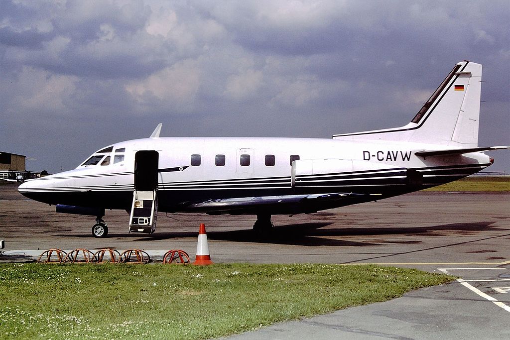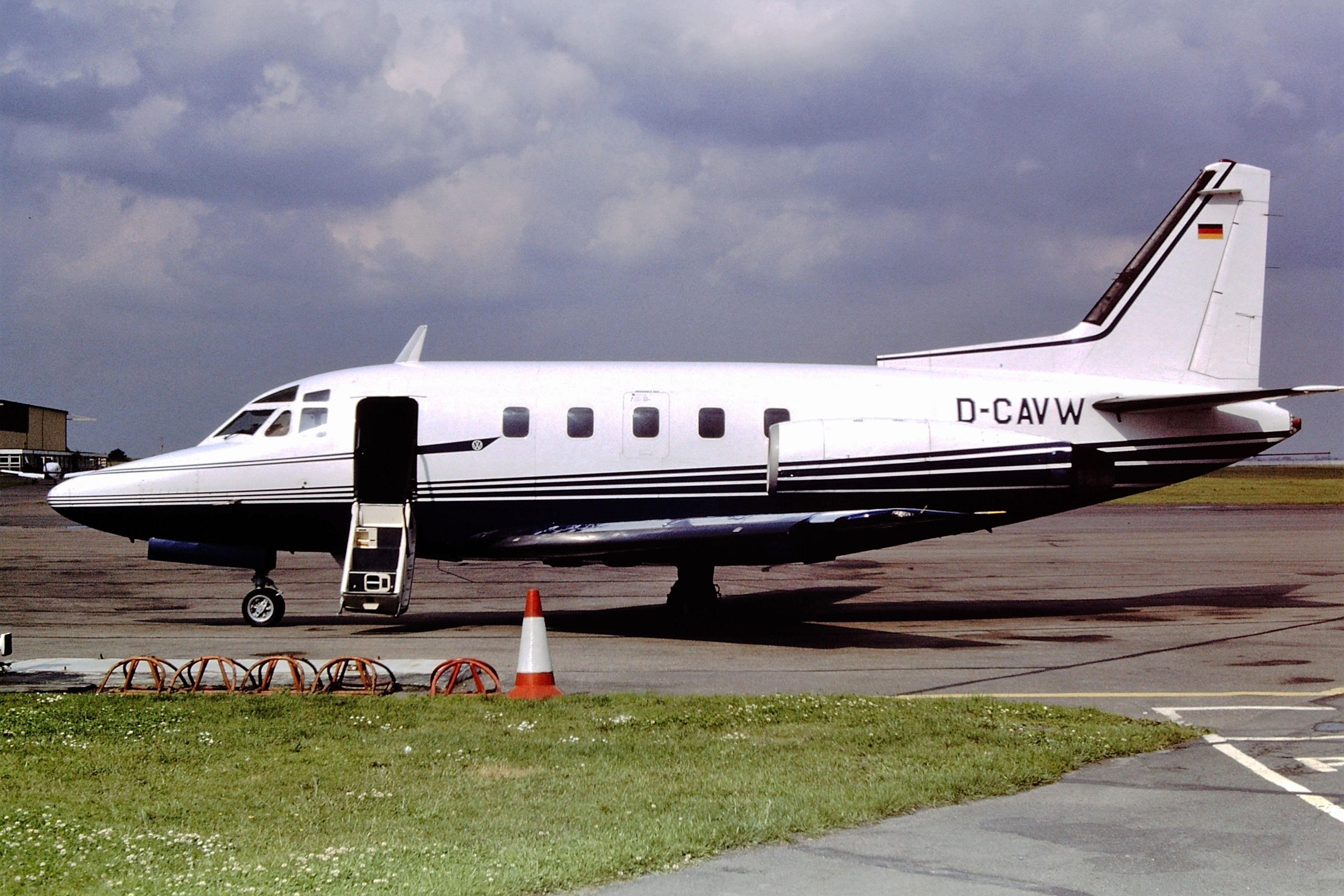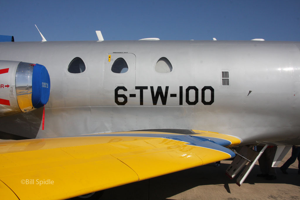 un North American Sabreliner : L'enregistrement flou semble être N9500B. Si c'est correct, ce Sabreliner est l'une des 65 cellules de sous-type NA265-40 construites. Au cours de sa vie, cet avion a porté les immatriculations suivantes: N5511A, N5511Z, N66ES puis a été vendu à l'armée de l'air suédoise (comme type Tp86 avec le numéro de série 86002/862). Cet avion est maintenant stocké par cette Armée de l'Air.