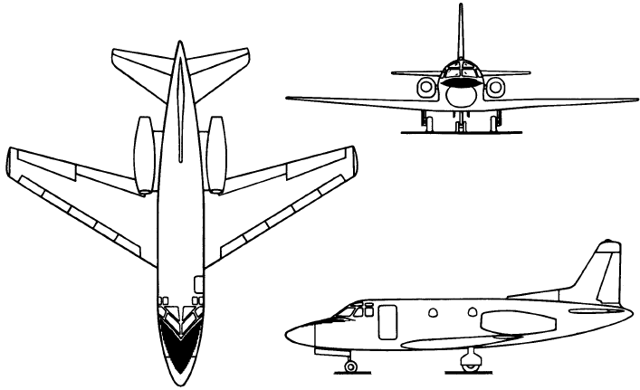 Dans le monde civil, c'est un des tout premiers jets d'affaires, et parfois un avion-cargo léger pour le transport de colis. Les militaires, principalement américains, l'utilisent comme avion de transport léger et d'entraînement. Il est aussi souvent utilisé comme plate-forme pour des essais en vol de nature variée. Sa conception est basée sur celle du chasseur North American F-86 Sabre : la voilure, le train d'atterrissage, l'empennage, les commandes de vol sont dérivés de ceux du Sabre. Le nom commercial de l'avion reflète cette parenté.