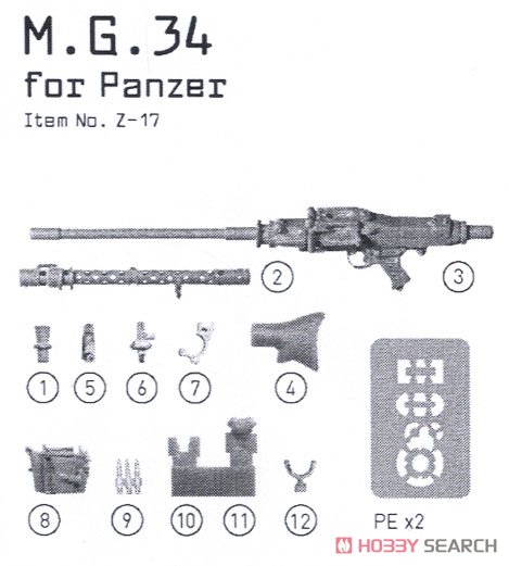 Ce kit est spécialement conçu pour s'adapter au support Remote Control Mg (article Z-16), mais il peut également être utilisé sur tous les autres panzers. Il contient 12 pièces en résine et 2 pièces en photo-découpe, y compris des supports pour fixer le mg au bouclier Stug mg.