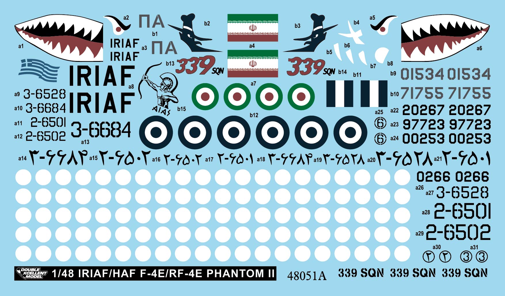 Il s'agit d'un kit de décalcomanies à l'échelle 1/48. Il est conçu pour les kits F-4E/RF-4E au 1/48 des marques Hasegawa, Italeri et Revell.