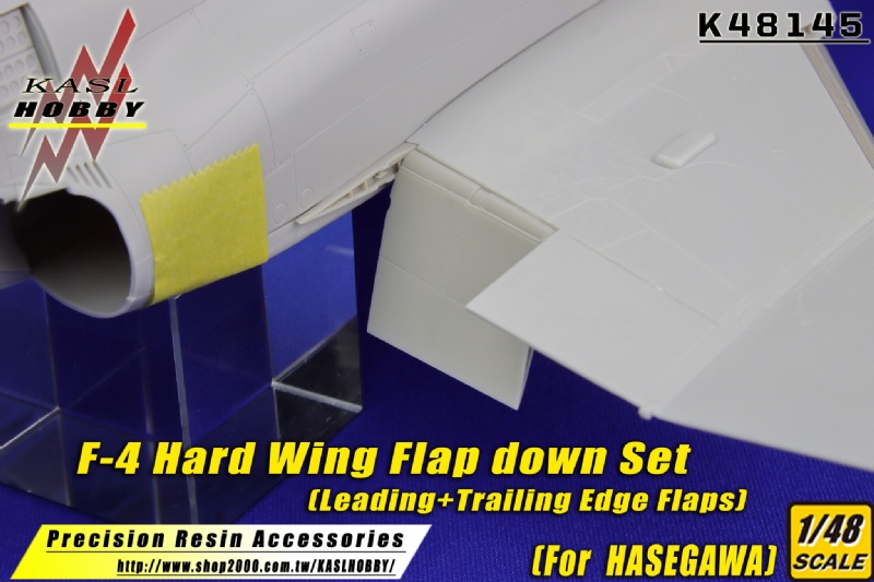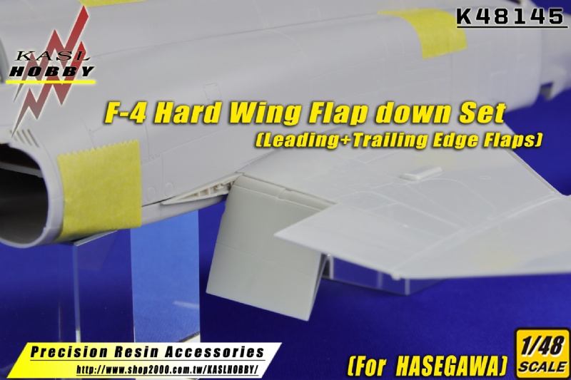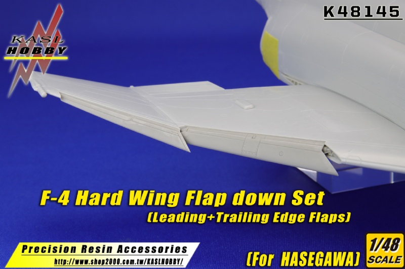 Il s'agit d'un kit d'accessoires à l'échelle 1/48 pour améliorer la maquette originale. D'après la marque : « Ce kit est conçu pour les lattes de bord d’attaque et les volets arrière en résine de F-4 au 1/48 de la marque Hasegawa. Résoudre les difficultés de l’usine d’origine sans abaisser les fentes / volets de bord d’attaque et l’auto-modification, et renforcer les détails de chaque pièce pour répondre aux caractéristiques de la machine réelle. C'est un kit de haute qualité à ne pas manquer si vous aimez le F-4 Ghost ! »