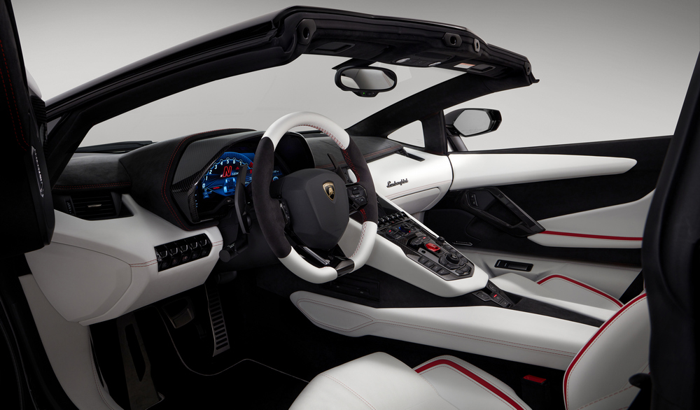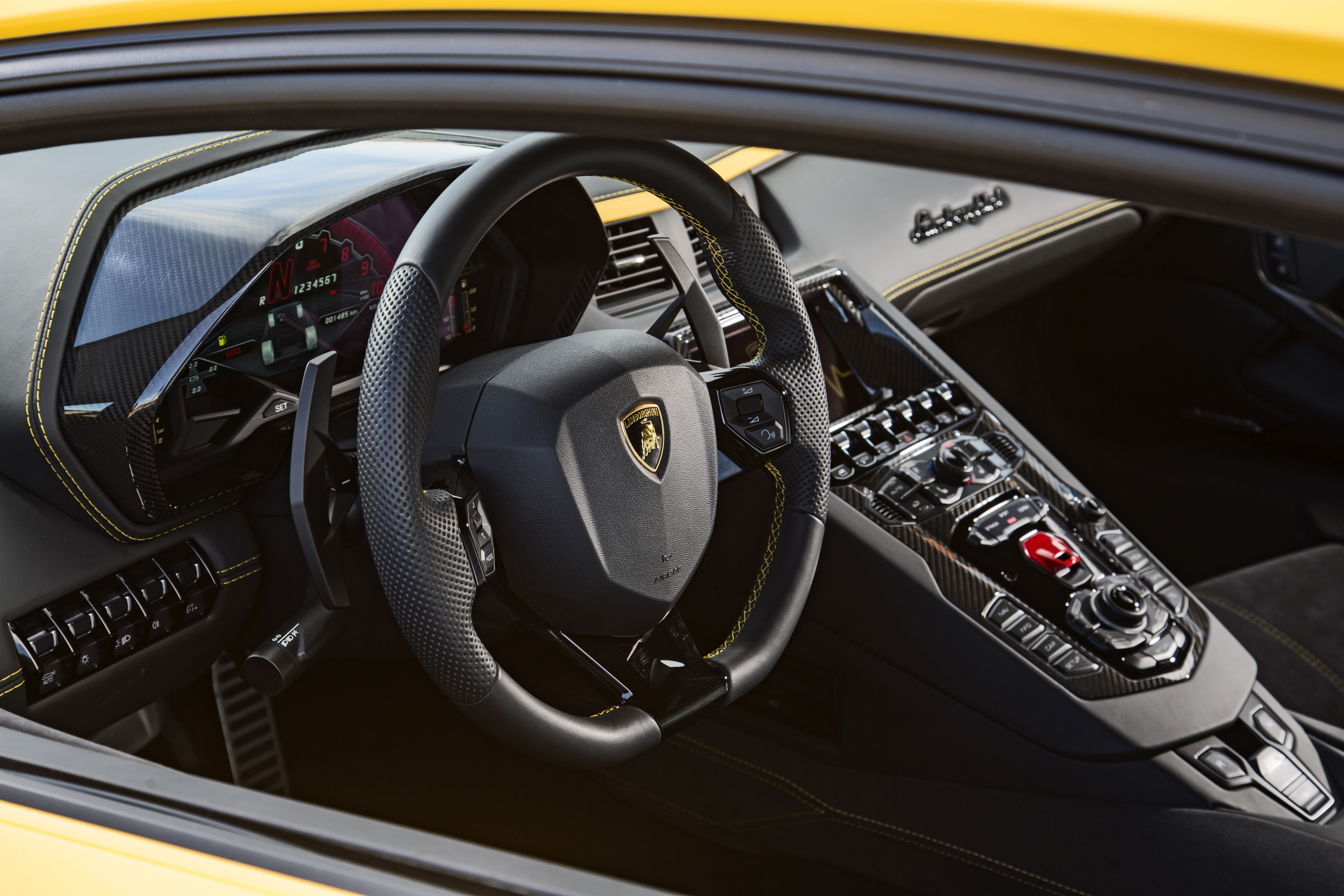 L’Aventador S est une supersportive extrêmement luxueuse affichant une technologie d’avant-garde. Les finitions intérieures sont réalisées avec des matériaux de très grande qualité et offrent un choix de possibilités infini. L’élégance épouse une technologie de pointe, comme celle du tableau de bord doté d’un écran TFT interactif à cristaux liquides, au graphisme repensé, et le système d’éclairage à LED spécialement conçu.