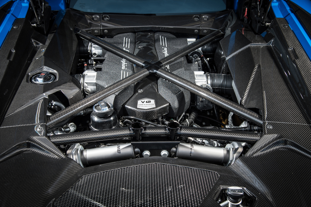 Écoutez le moteur V12 emblématique, le cœur battant de 740CV qui peut atteindre jusqu’à 350km/h sur l’asphalte : une puissance maximale avec un son à couper le souffle.