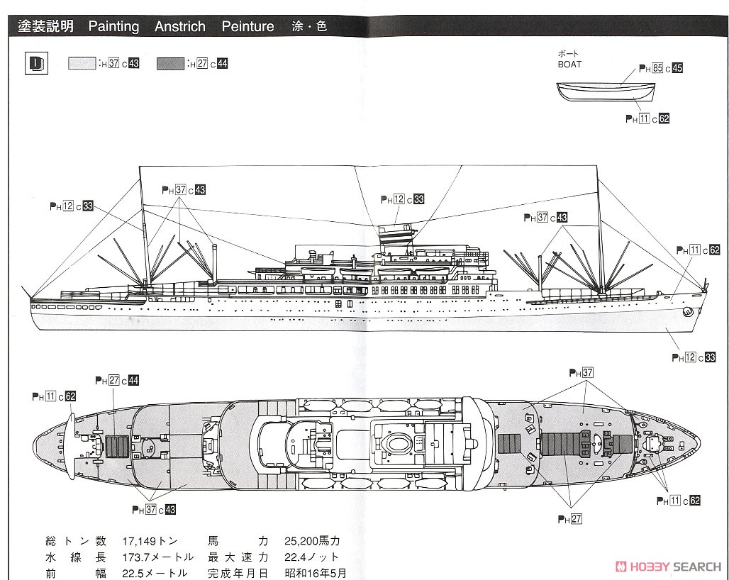 Ce kit représente le modèle du navire de croisière japonais Kagu-maru avant sa conversion en porte-avions Otaka à l'échelle 1/700.