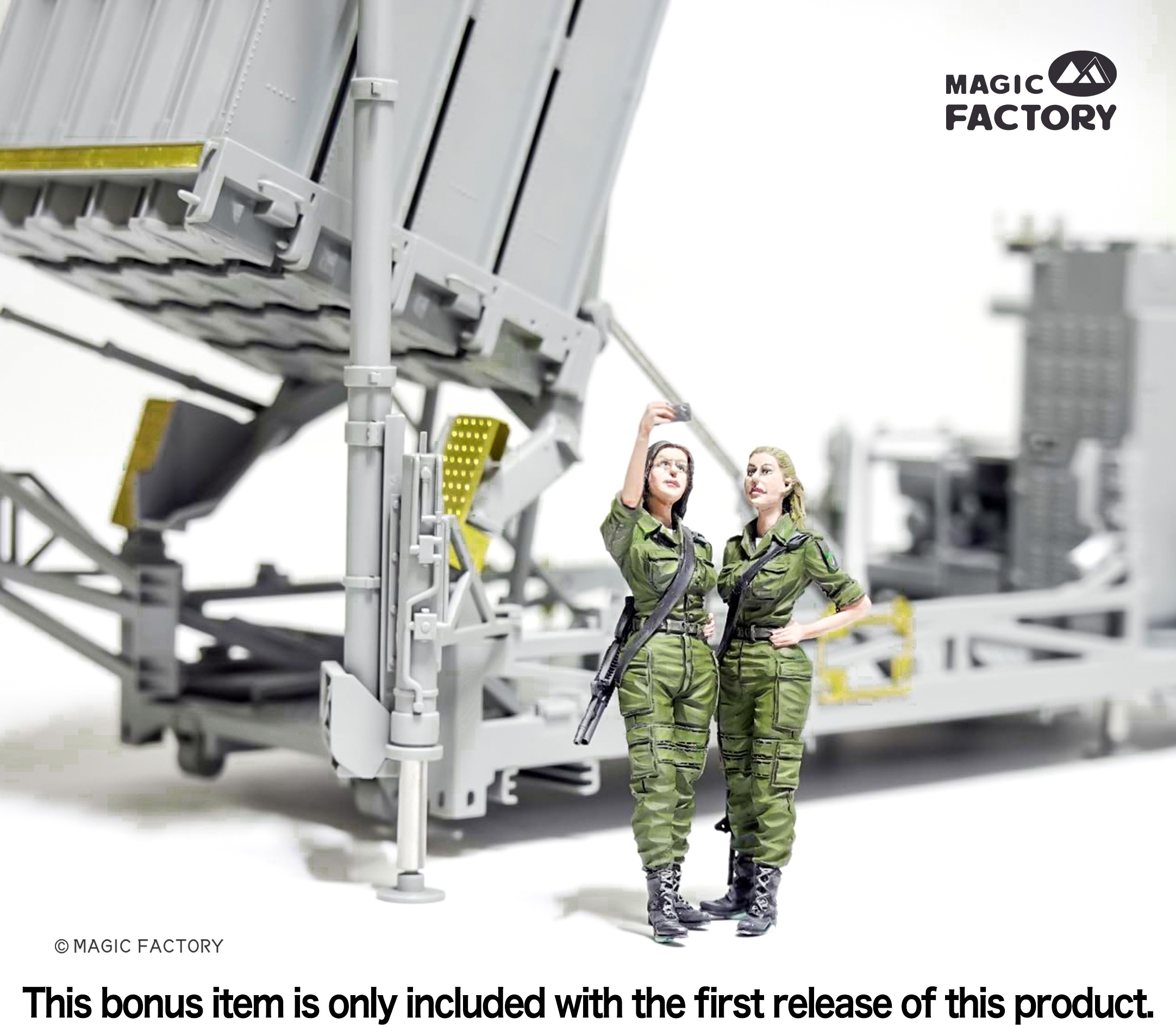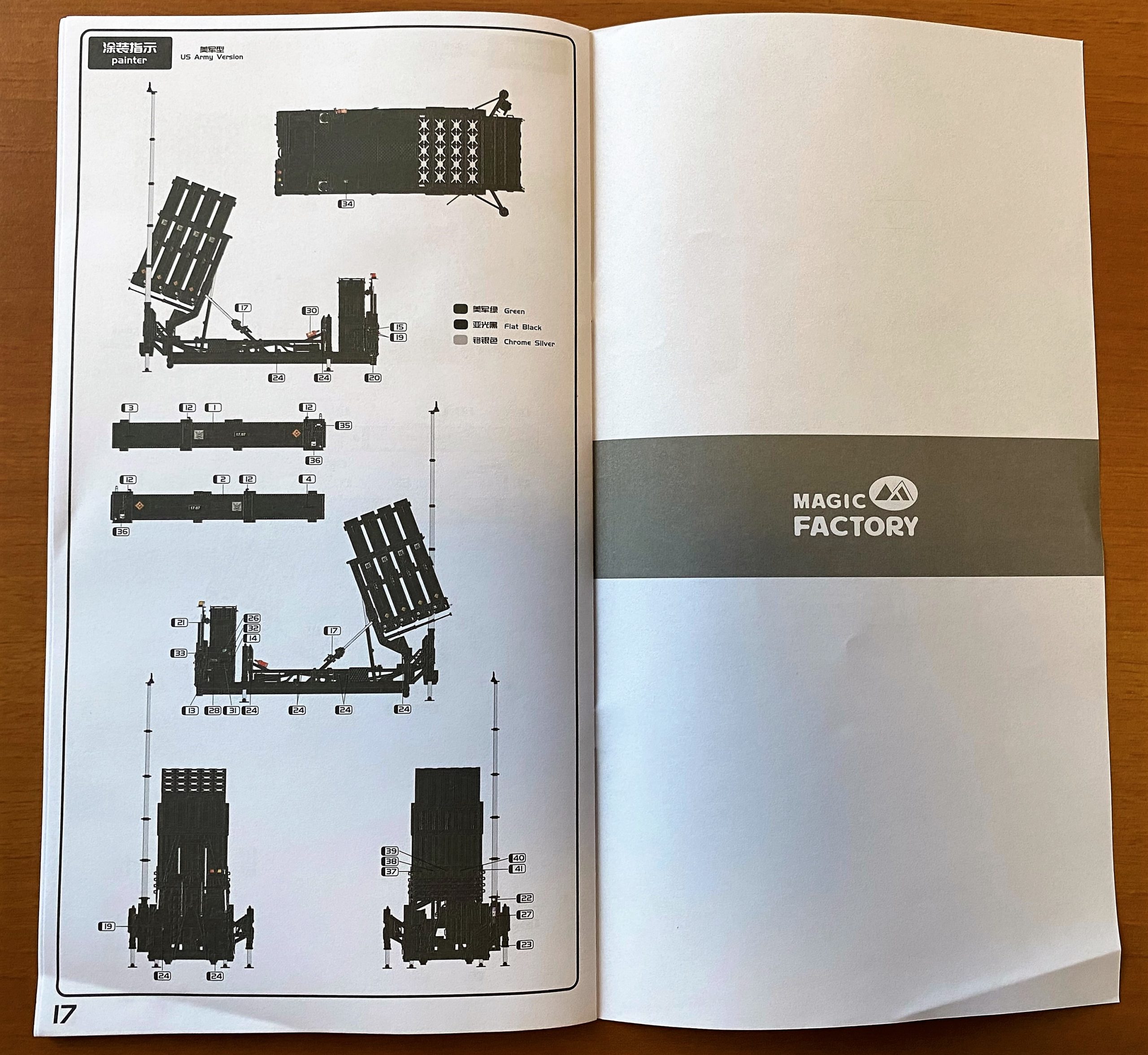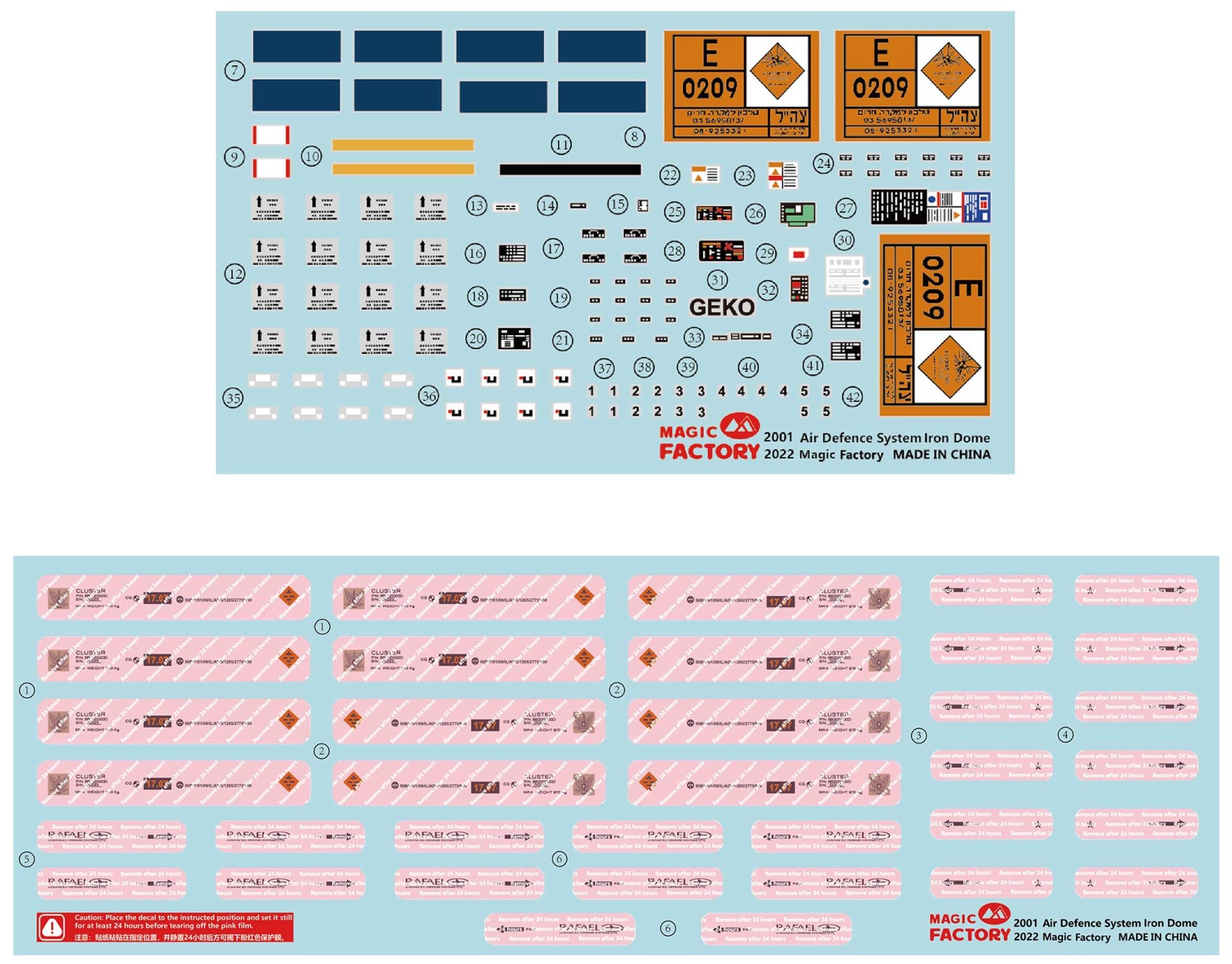La société chinoise Magic Factory est sur le marché depuis 2021. La boîte s'ouvre par le haut. Le nouveau kit se compose de 5 grappes différentes, une feuille de pièces photogravées, des tubes métalliques, une petite bobine de fil, 2 feuilles de décalcomanies et 2 figurines de soldats israéliens.