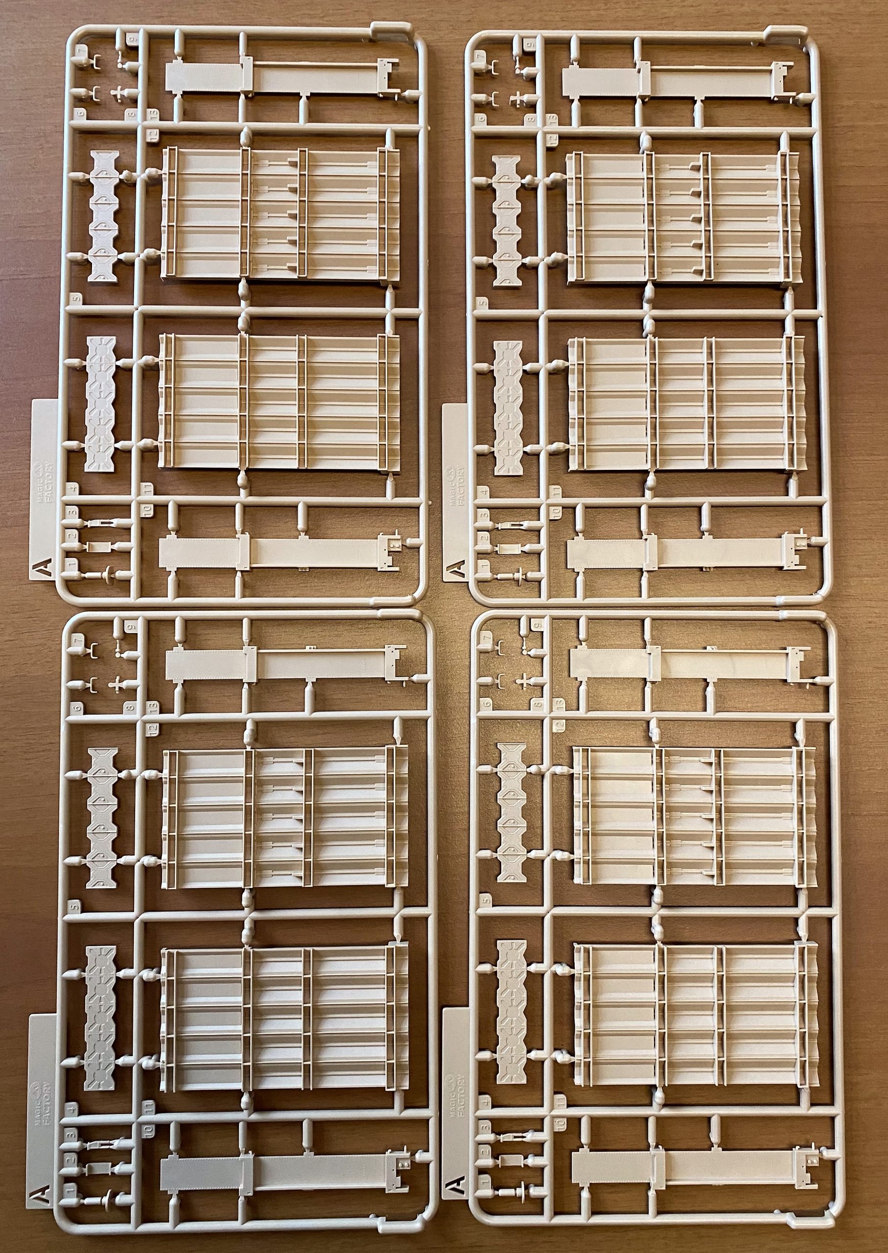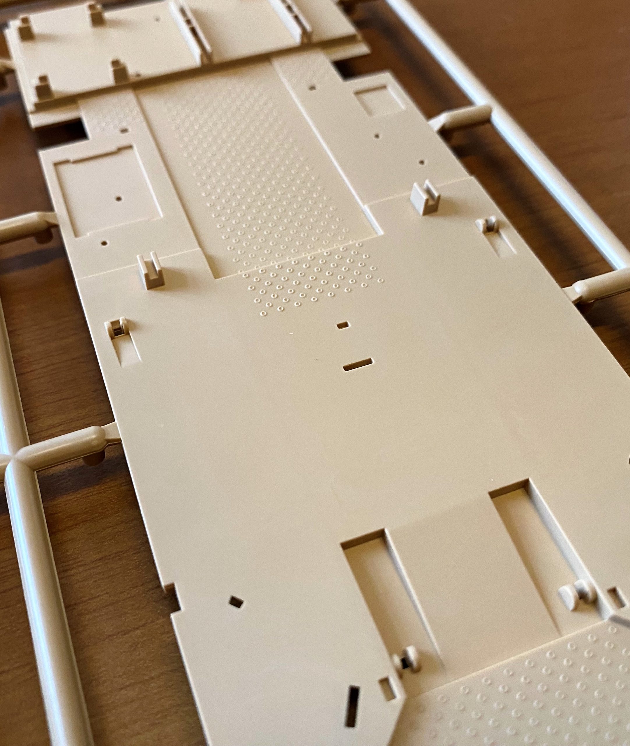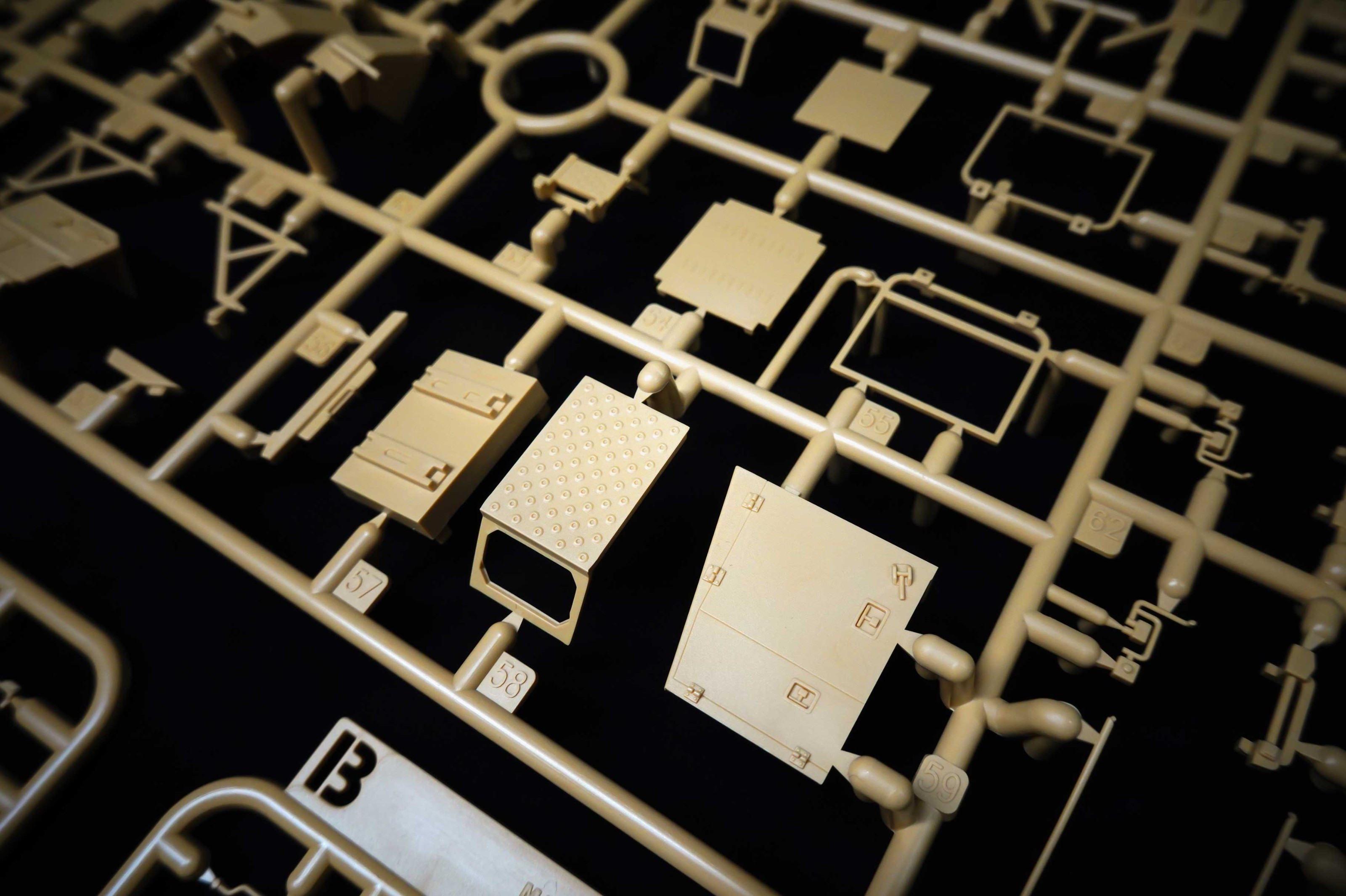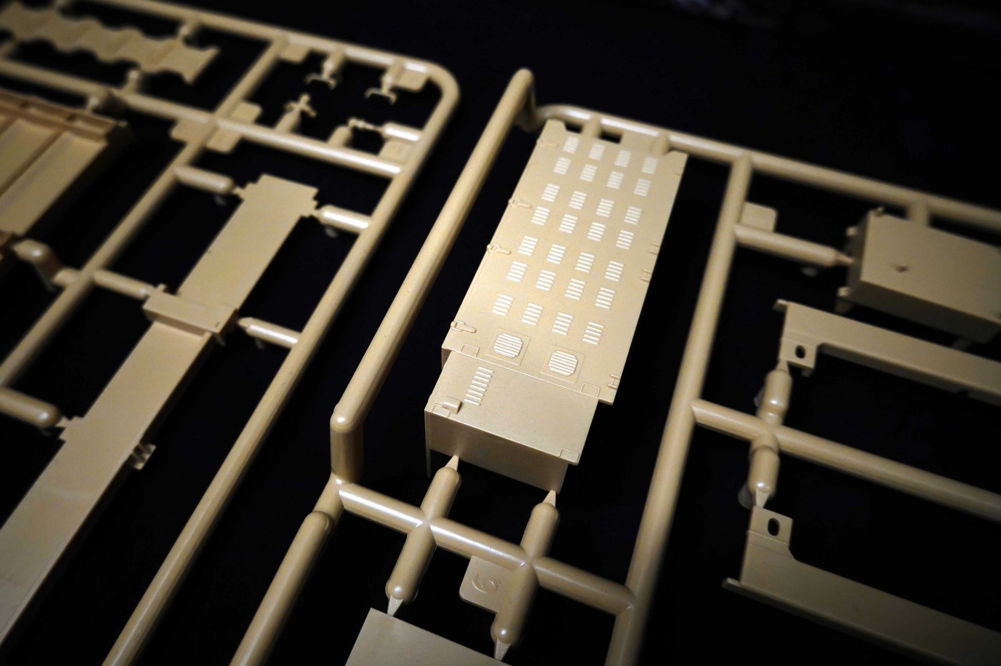 Les composants des 9 grappes sont impeccables. Moulés à partir de plastique marron clair, ils rappellent les pièces en plastique Bandai. La question de savoir si cela s'applique également à la précision de l'ajustement ne peut être évaluée que pendant la construction. Le modèle peut être affiché en mode lancement et transport. Cependant, aucun changement ultérieur n'est prévu.