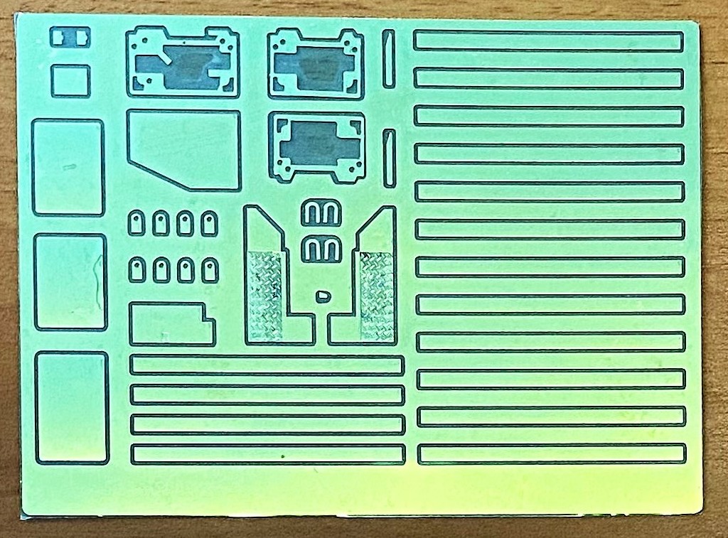 Les pièces photogravées sont de nature simple, mais devraient ajouter quelques détails au modèle. Les tubes métalliques font partie de la représentation de l'hydraulique. Le fil fait partie de l'antenne.