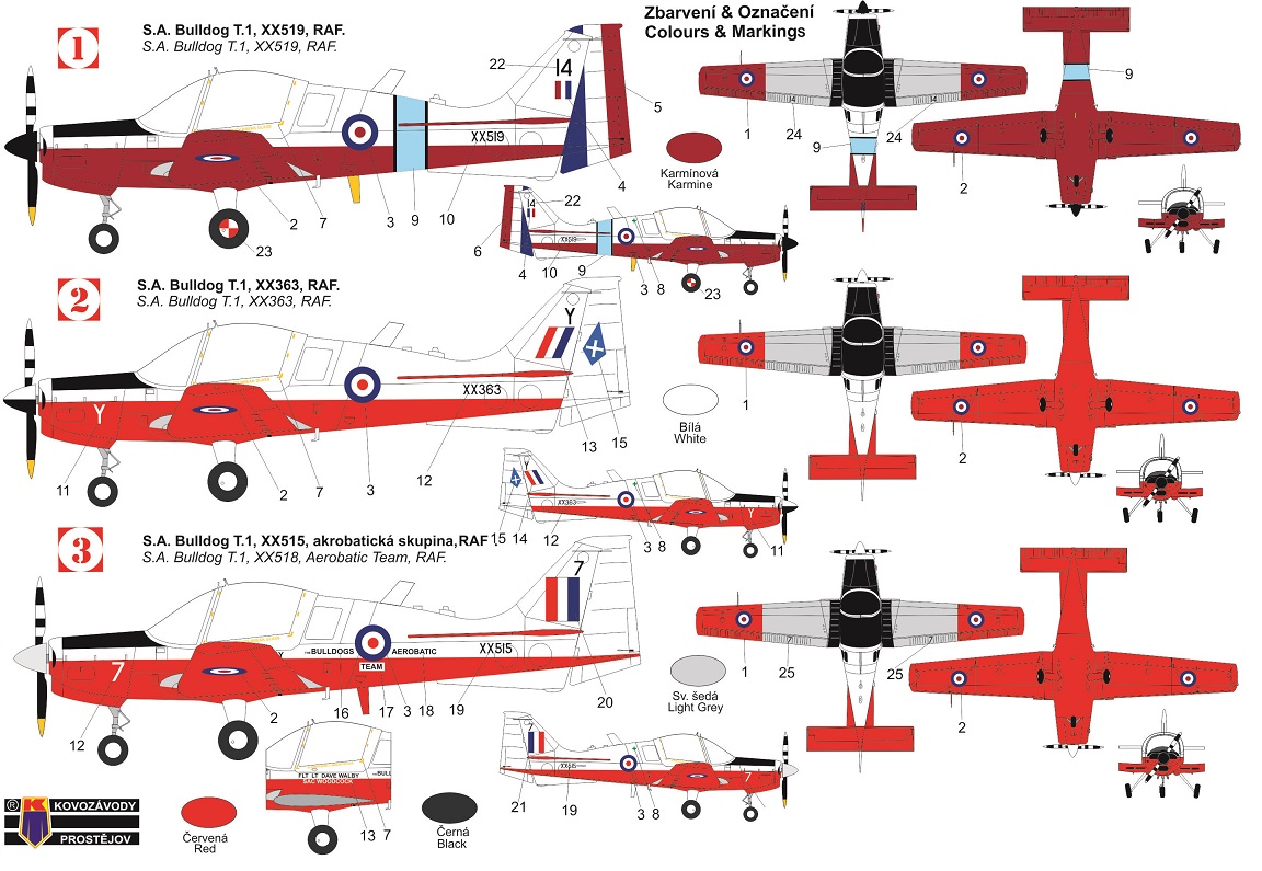 Le nouveau kit de KP Model du S.A. Bulldog T.1 est un tout nouveau moule ! Les décalcomanies sont incluses pour 3 versions de la British Air Force.
