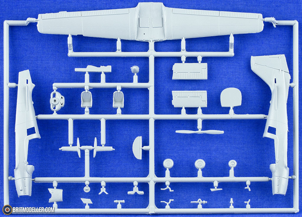La construction commence de manière prévisible avec le cockpit, le tableau de bord vierge recevant un décalcomanie d'instrument pour le détailler, et les 2 sièges recevant des ceintures (décal). Le plancher est moulé dans l'aile en une partie et présente des zones surélevées pour les sièges qui sont détaillées avec une paire de colonnes de commande, une console centrale et une cloison arrière, tandis que le tableau de bord est collé à l’avant de l’ouverture du poste de pilotage après la fermeture des moitiés du fuselage. Une paire de vitres latérales apparaît de l’intérieur, et l’avant est fermé en ajoutant le capot avant, qui a une représentation de la banque avant de piston insérée derrière elle qui montrera à travers les prises ovales de chaque côté de l’entourage de l’arbre d’hélice surélevé. Les ailes et le fuselage sont joints, et les gouvernes de profondeur monobloc avec leurs surfaces de vol nervurées moulées sont collées dans leurs fentes à l'arrière. La verrière est une pièce unique sur laquelle le cadrage est gravé, et c'est une pièce cristalline qui montrera votre travail à l'intérieur une fois terminé. Il y a quelques choix d'antennes sur la colonne vertébrale derrière le cockpit, et un phare d'atterrissage transparent s'insère dans un renfoncement dans le bord d'attaque de l'aile tribord.