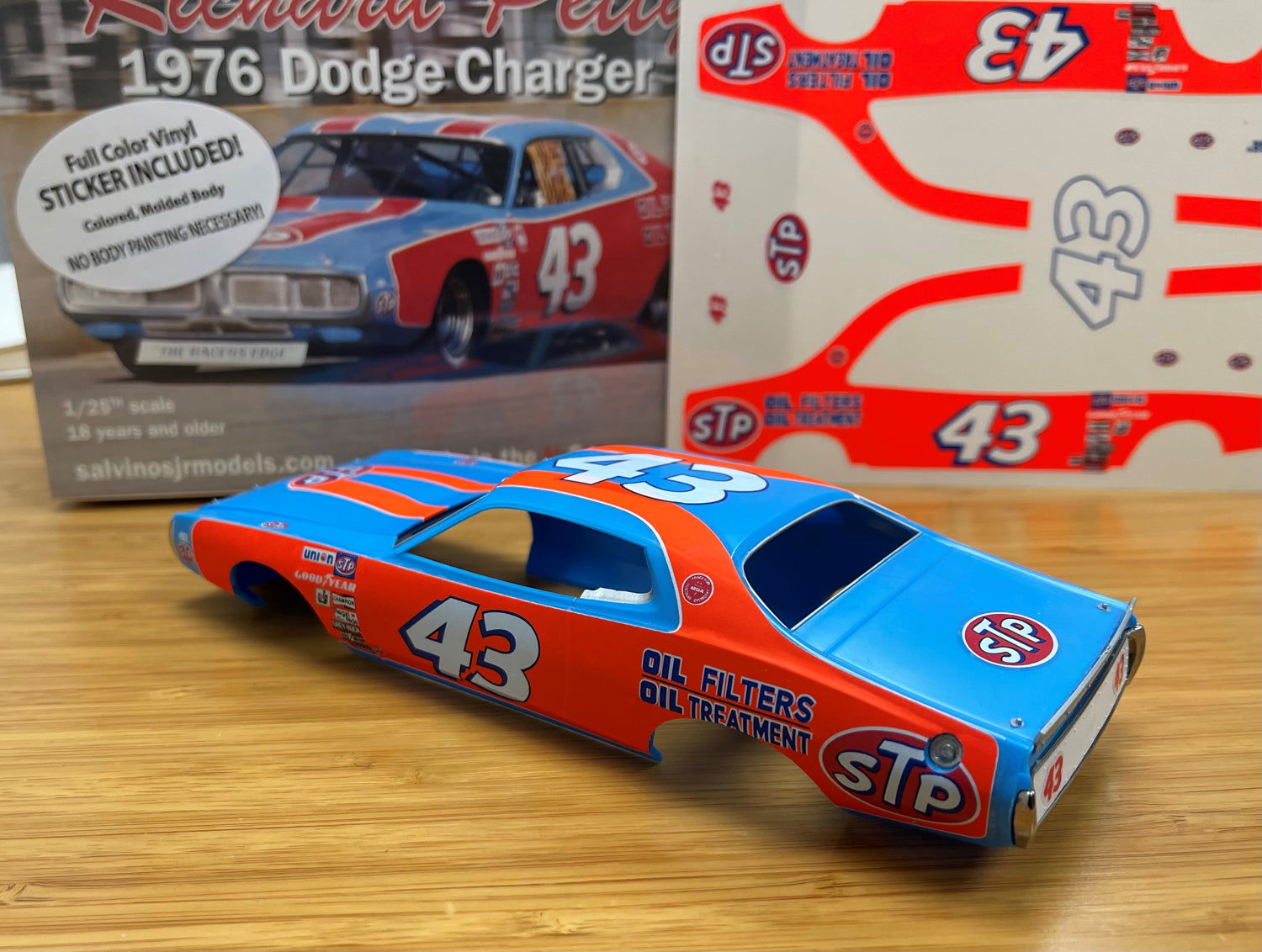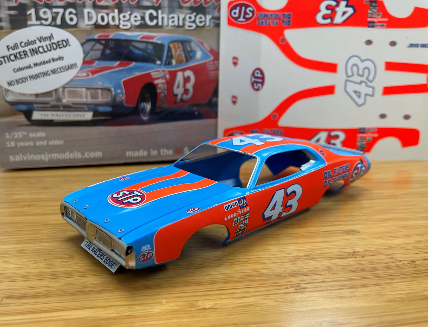 | Salvinos JR Richard Petty 1976 Dodge Charger Kit Review par Austin’s Model Cars avec le kit terminé |