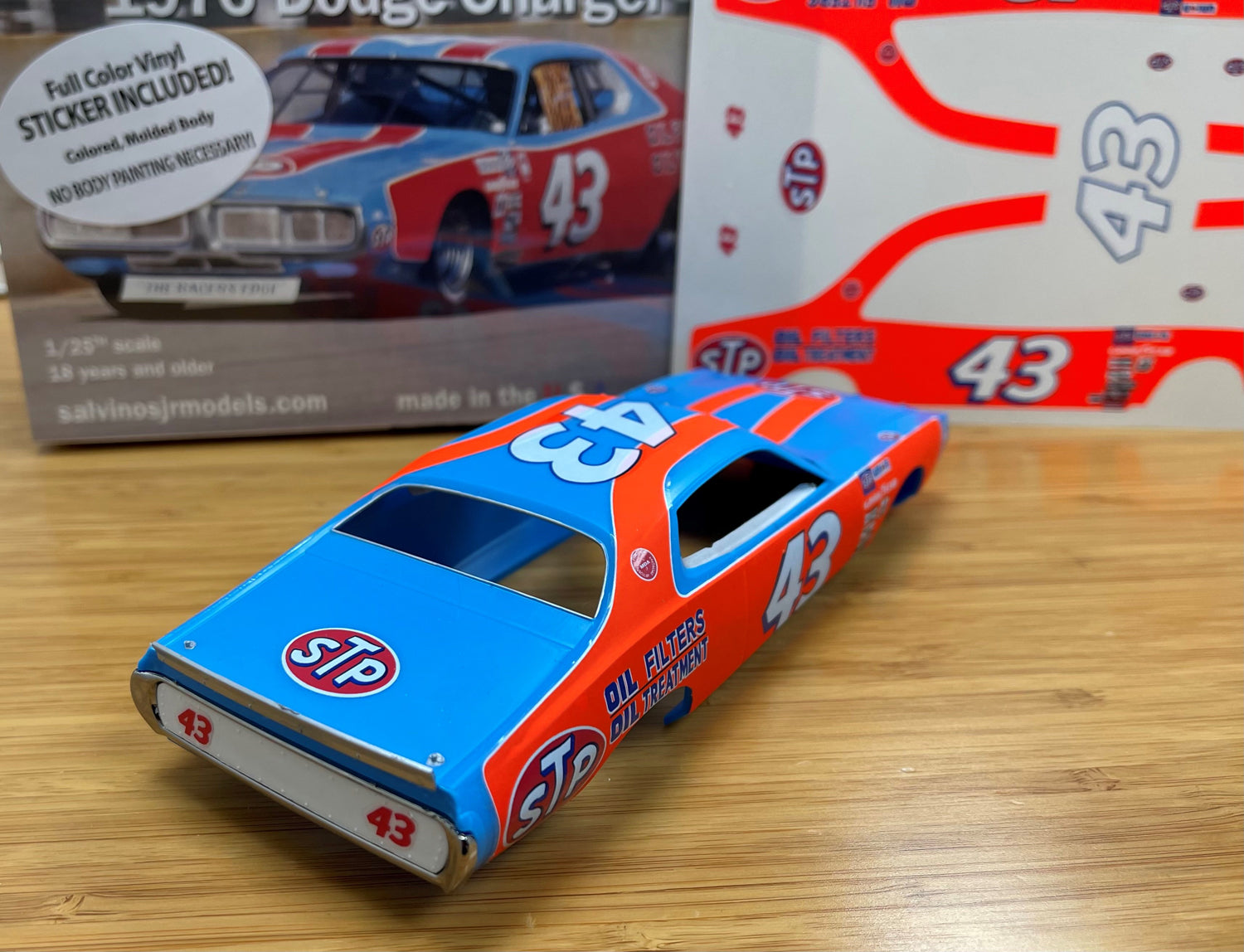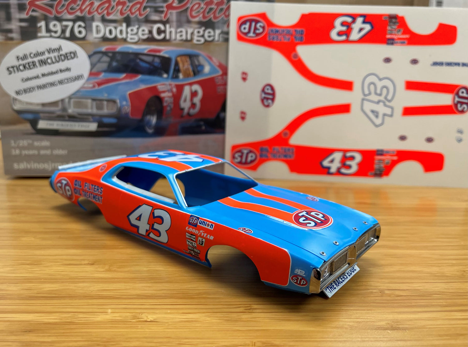 Ce kit de Salvinos JR Models au 1/25 vous permet de monter la Dodge Charger de 1976 conduite par le légendaire pilote NASCAR Richard Petty.