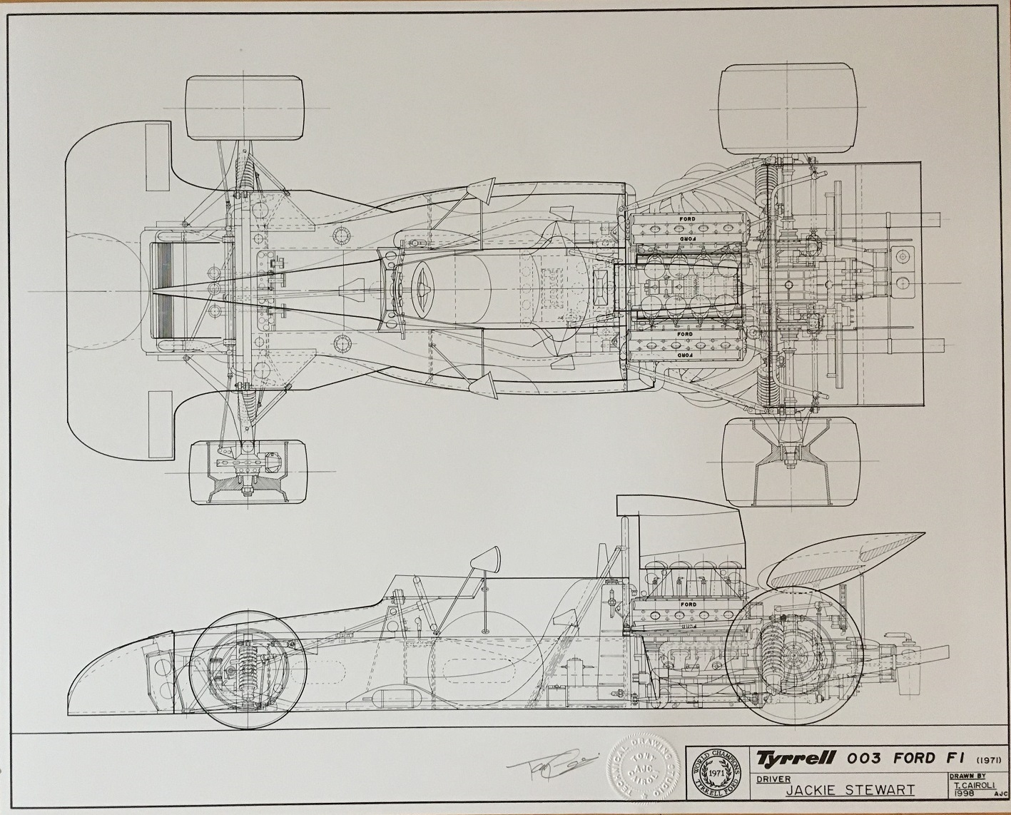 Pilotée par Jackie Stewart, elle a fait ses débuts au Grand Prix d’Espagne 1971 et a gagné dès la première tentative. Tyrrell et Stewart en ont profité alors que Lotus et Ferrari luttaient en 1971 ; ils ont remporté 6 courses et Stewart a remporté son 2e championnat du monde. Stewart et son coéquipier François Cevert ont utilisé différents châssis tout au long de 1971 et 1972 s’adaptant à leurs différentes hauteurs, le plus court Stewart utilisant 003 et le plus grand Cevert concurrençant la Tyrrell 002. Une nouvelle carrosserie avant a fait ses débuts sur la 003 de Stewart pour le Grand Prix de France, et cette carrosserie a été mise sur la 002 de Cevert pour le Grand Prix suivant en Grande-Bretagne.