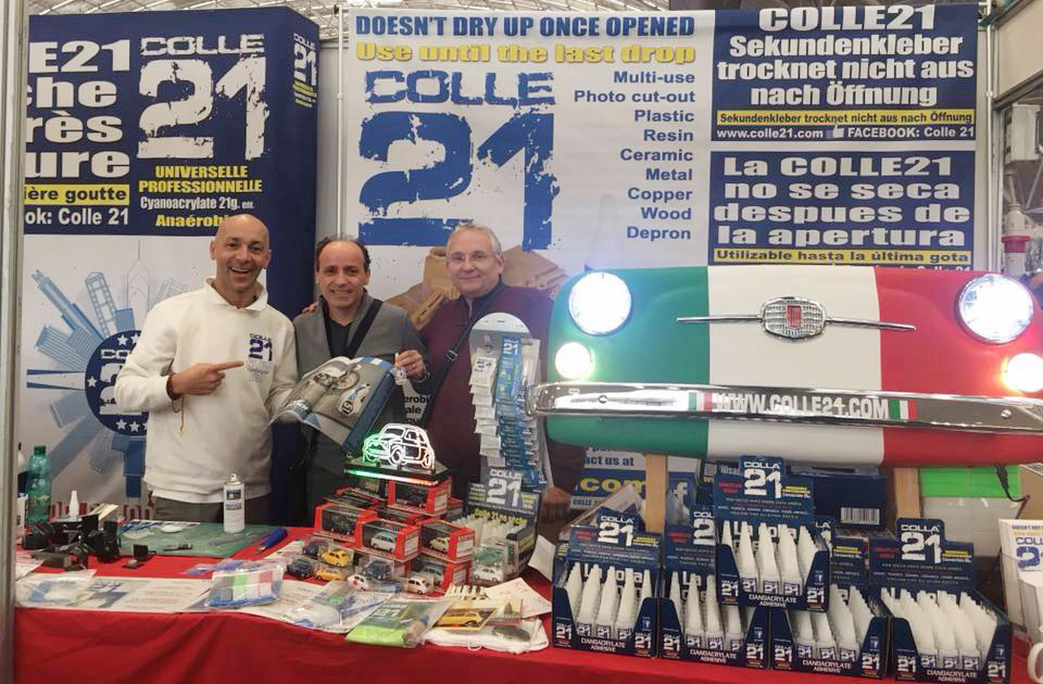 Casu Danilo, lors de ces salons internationaux, a présenté la gamme de produits de maquettisme de Superglue Colle21 et des produits complémentaires aux designers, concepteurs de figurines, amateurs de bricolage et pour les voitures plus anciennes.