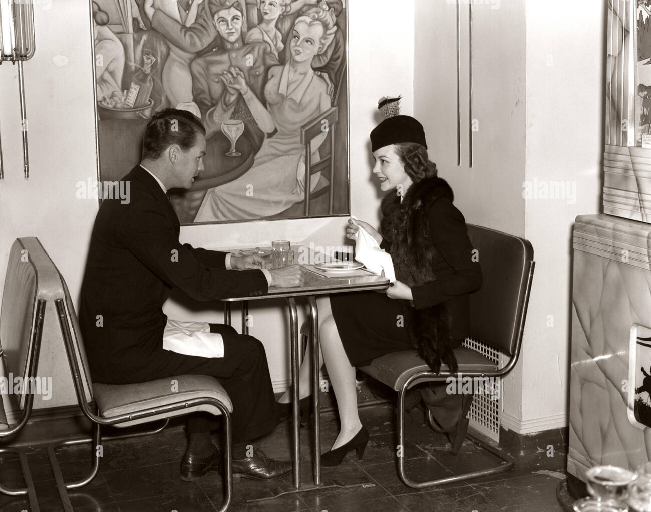 Il y a 3 personnages dans le décor - 2 clients de sexes différents et 1 serveur qui les sert.
