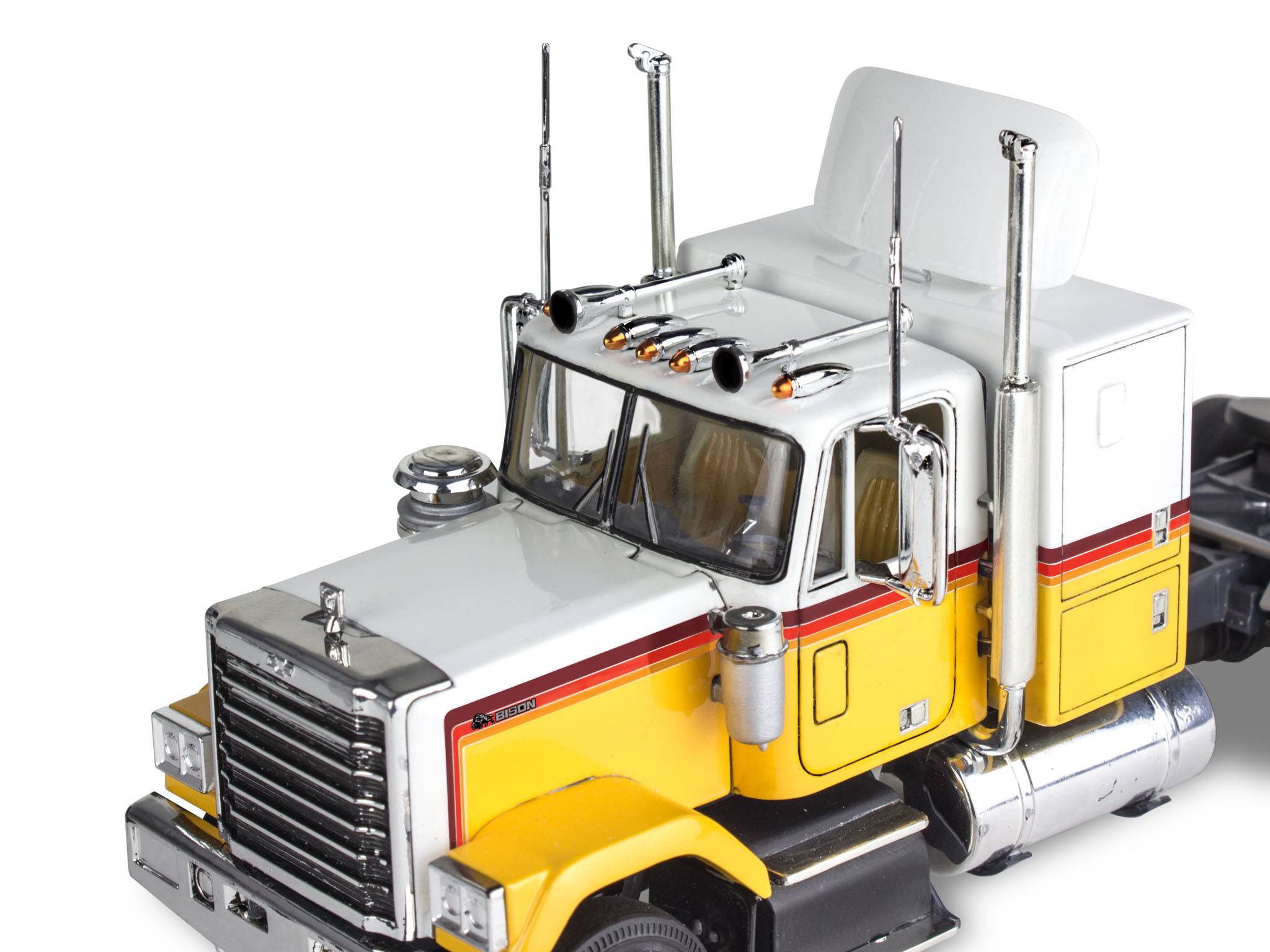 « Breaker one-nine... tu as le Road Hog ici... qu'est-ce que ça donne ? » Les 2 antennes radio CB sur ce Chevrolet® Bison™ sont un signe certain qu'un « bon copain » est assis derrière le volant de ce magnifique monstre. Le Chevy® Bison a été lancé en 1977, et le tout nouveau Big Rig disposait d'une cabine légère en aluminium, d'un capot en fibre de verre et d'un choix de moteurs diesel. Chevy s'est retiré du marché des poids lourds en 1981, ce qui a marqué la fin de la courte mais mémorable période de production du Bison.