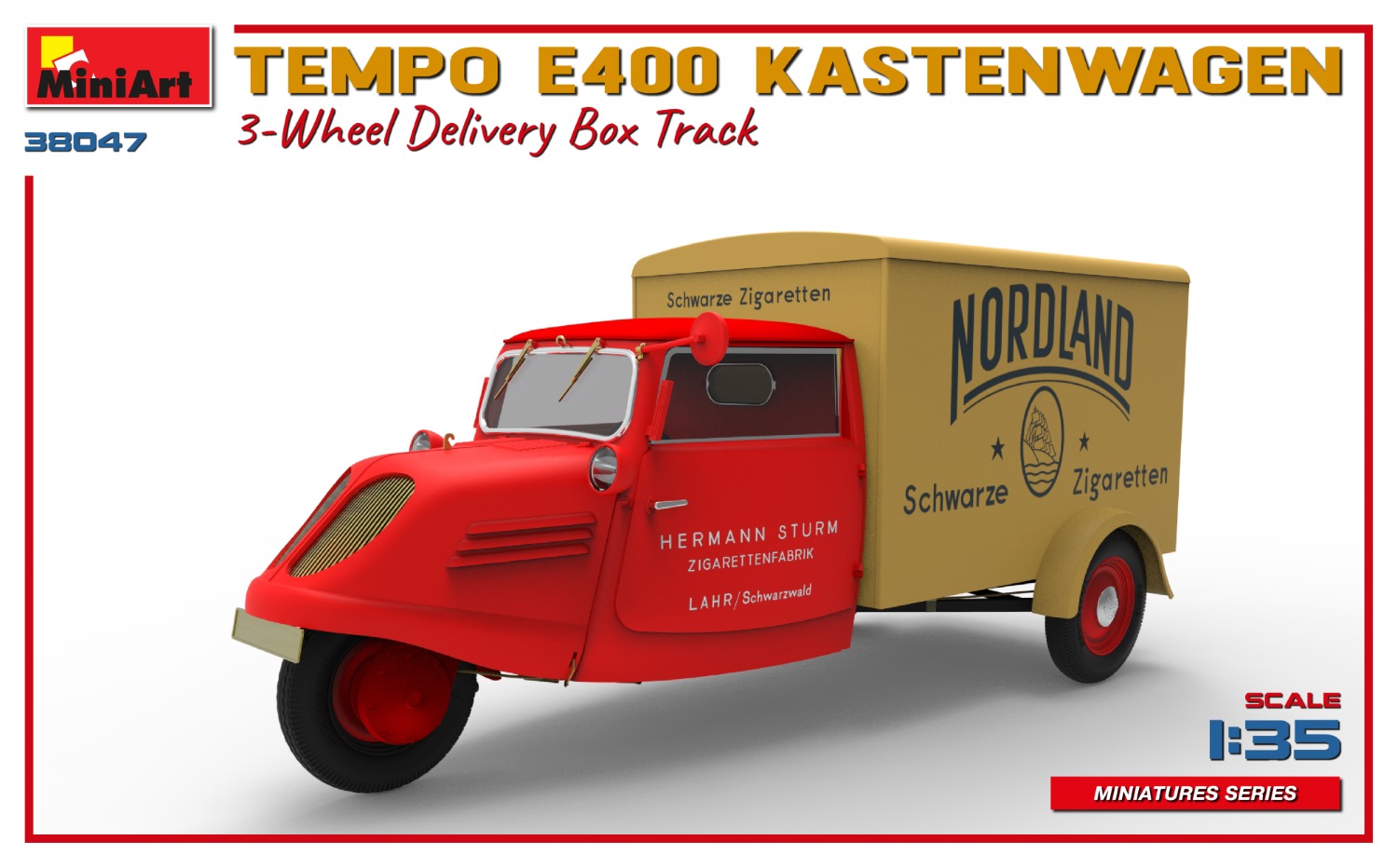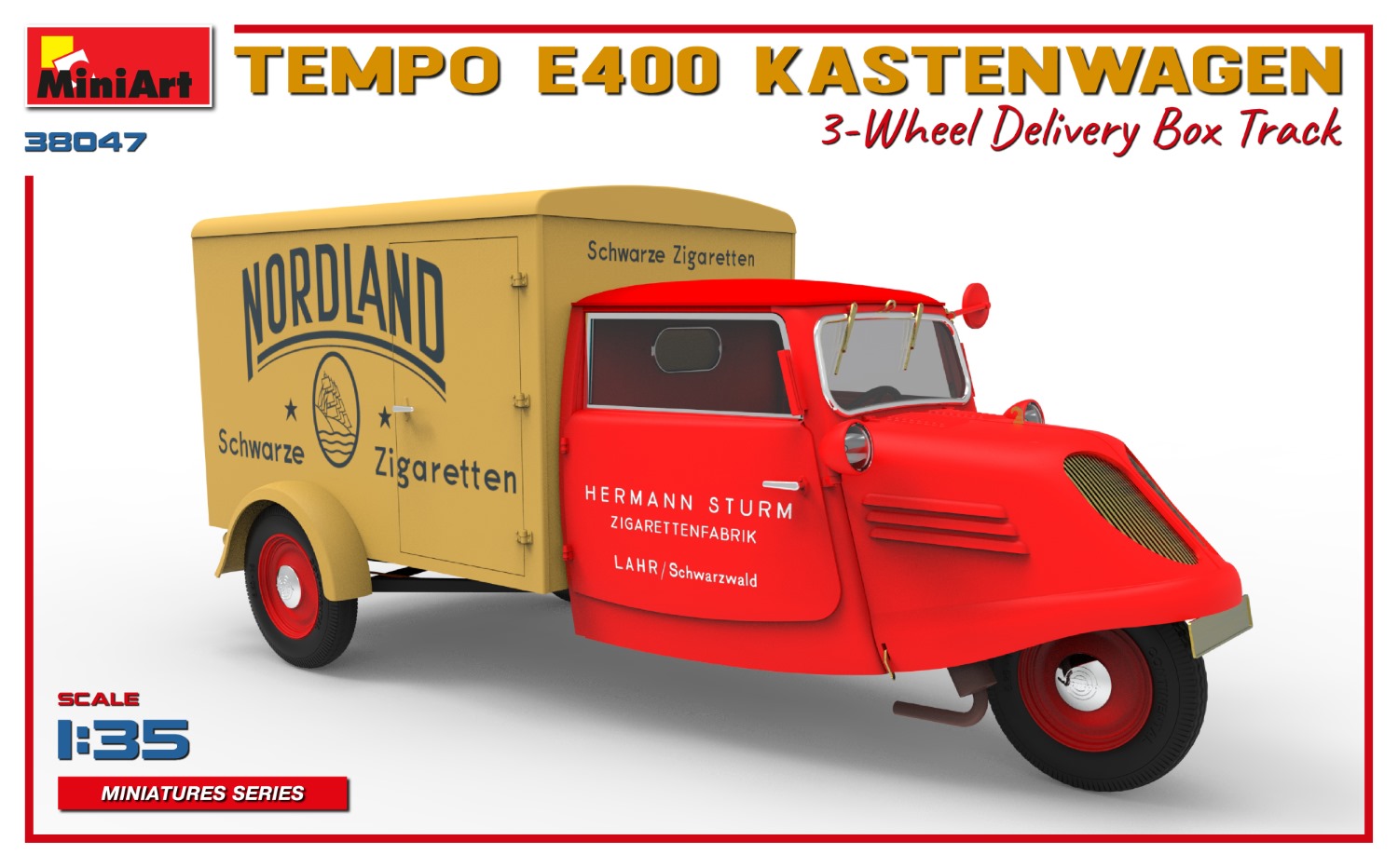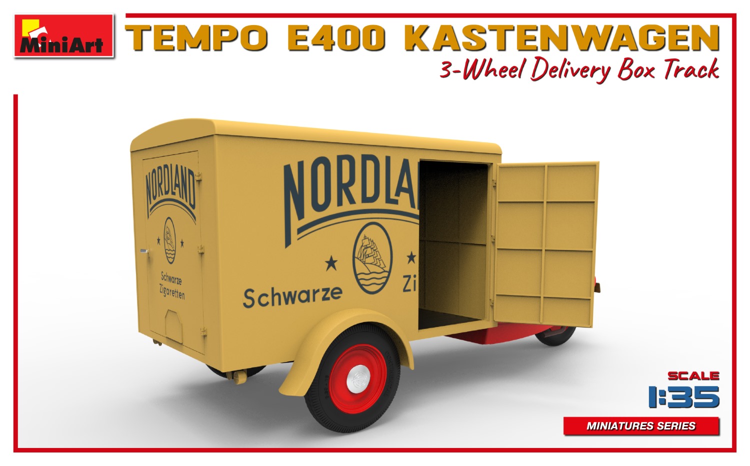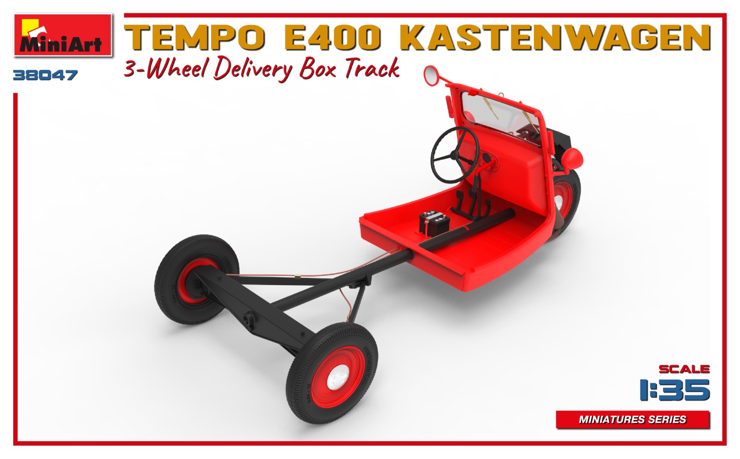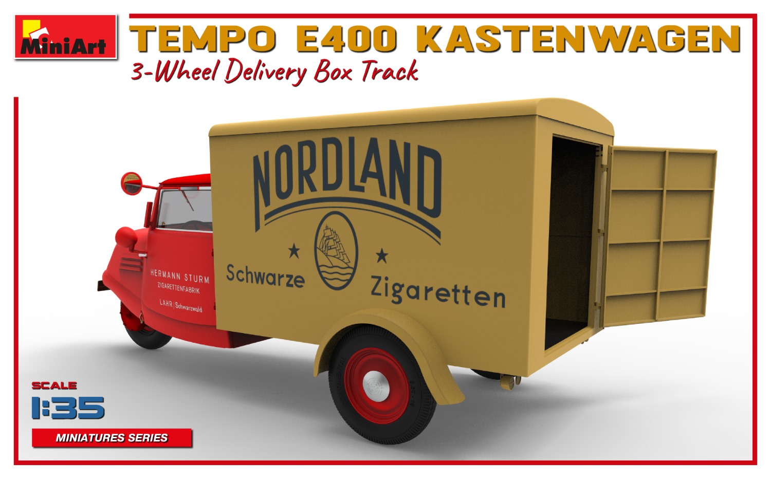 MiniArt nous apporte un kit de maquette à l’échelle 1/35 du camion de livraison à trois roues Tempo E400 Kastenwagen ! Les portes peuvent être construites ouvertes ou fermées; Des pièces transparentes et des pièces photogravées sont incluses, tout comme des décalcomanies pour quatre versions.