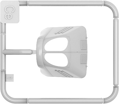Le capot avant est moulé en une seule pièce. La grille de radiateur sera ajoutée à l’aide de pièces en photo-découpe.