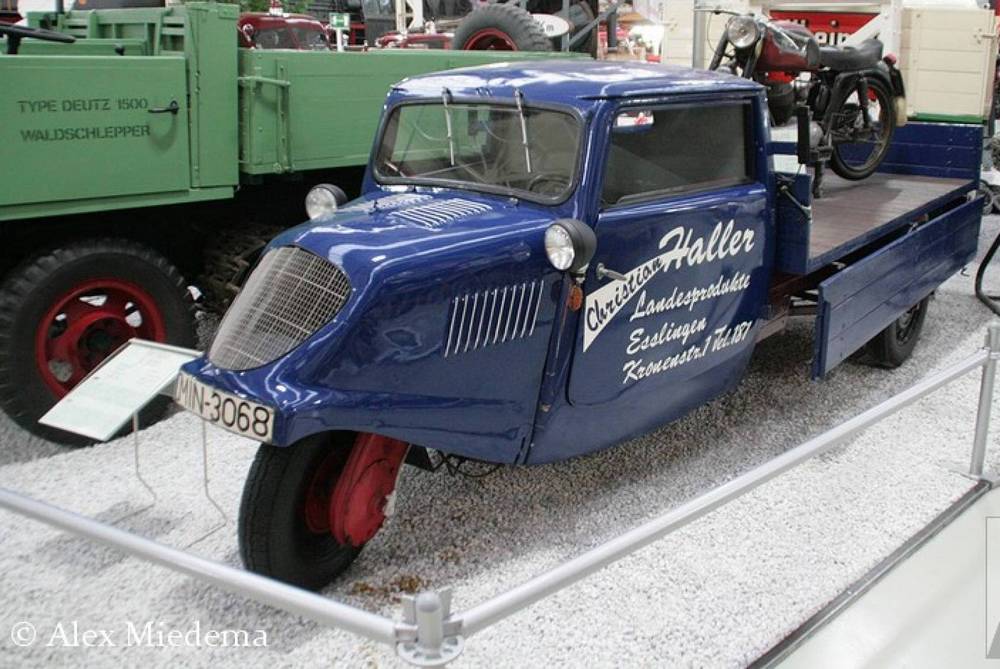 À partir de 1933, outre le tricycle, qui dispose désormais d'une cabine de conduite fermée devant la plate-forme de chargement, des berlines décapotables à 4 roues et des petites fourgonnettes de livraison avec caisses sont également fabriqués.